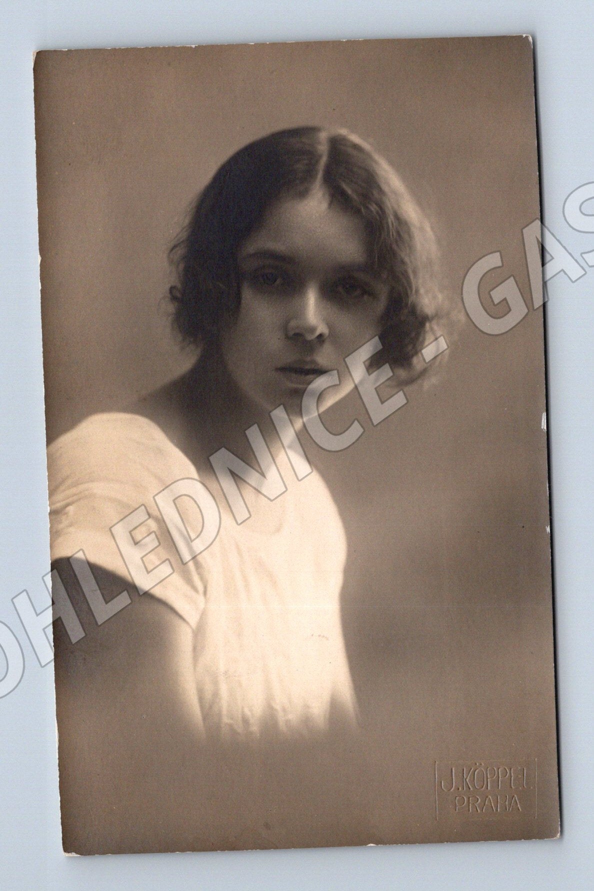 Ateliérová pohlednice – portrét mladé ženy, J. Köppel Praha
