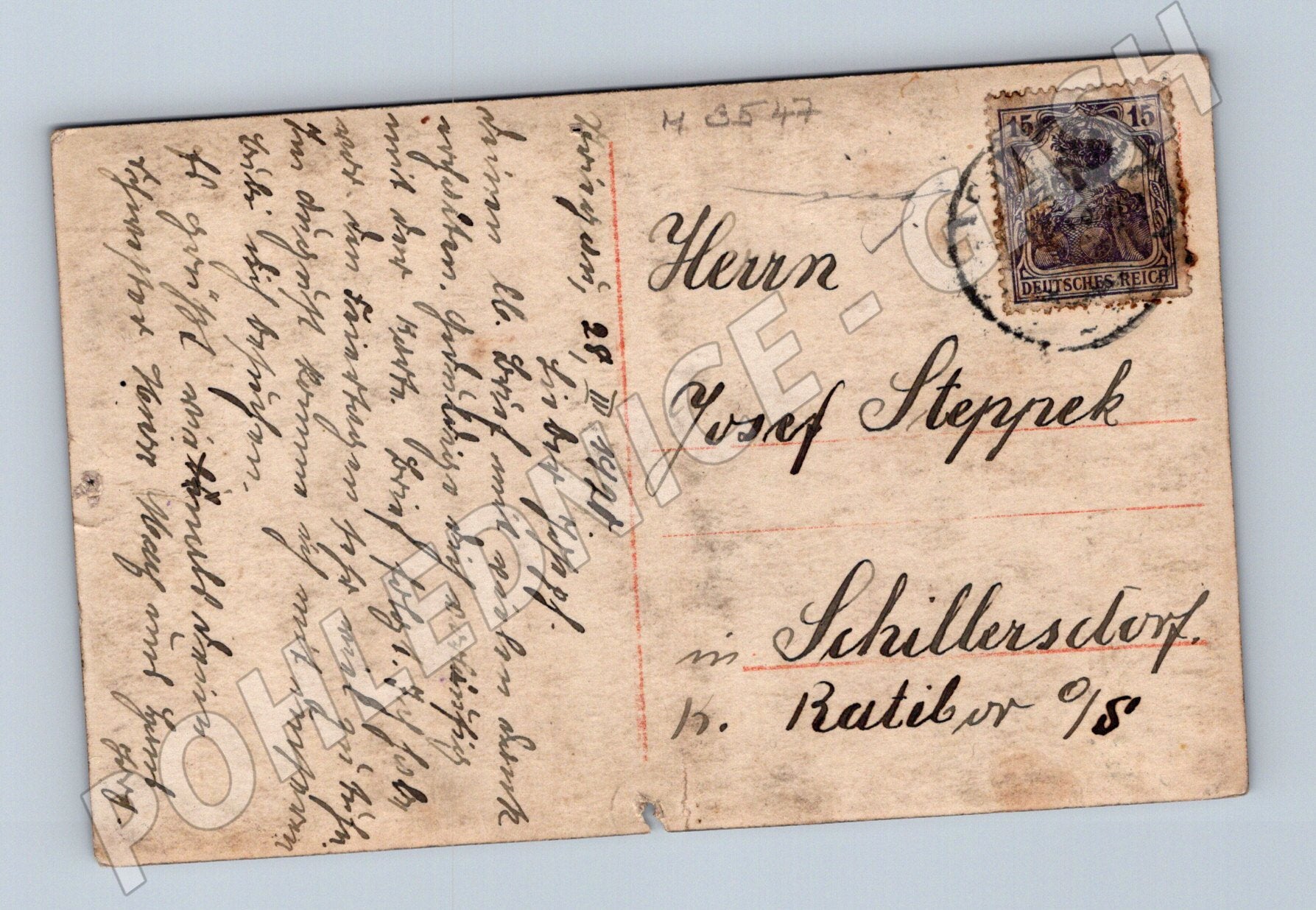 Starobylá pohlednice s názvem Sonnige Zeit zachycuje elegantně oděný pár ve stylovém dobovém oblečení. Na přední straně je krásná sepia fotografie ženy a muže, pravděpodobně z období počátku 20. století. Žena drží slunečník, oba jsou oblečeni v letním dobovém oblečení, u vody, v romantické atmosféře. Na zadní straně je rukou psaný text v němčině, adresa a známka z období Německé říše v nominální hodnotě 15. Pohlednice byla zaslána do Schillersdorfu, obce v tehdejším Rakousku-Uhersku. Celkově ve velmi dobrém stavu s drobnými známkami stáří – mírně ošoupané rohy a malé zašpinění. Pohlednice je jedinečným sběratelským kouskem, vhodným pro milovníky historie, fotografie a starých pohlednic.