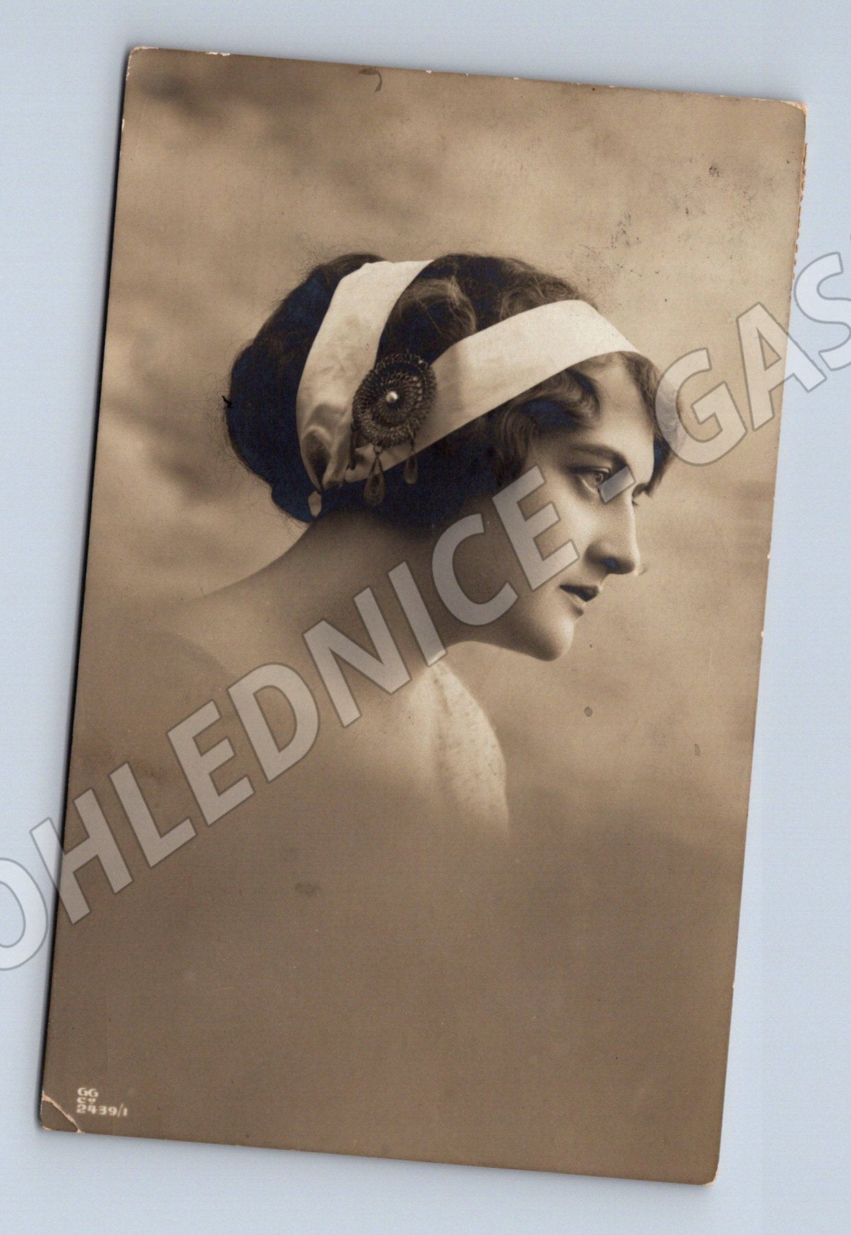 Stará pohlednice – portrét ženy, secese, Rakousko-Uhersko