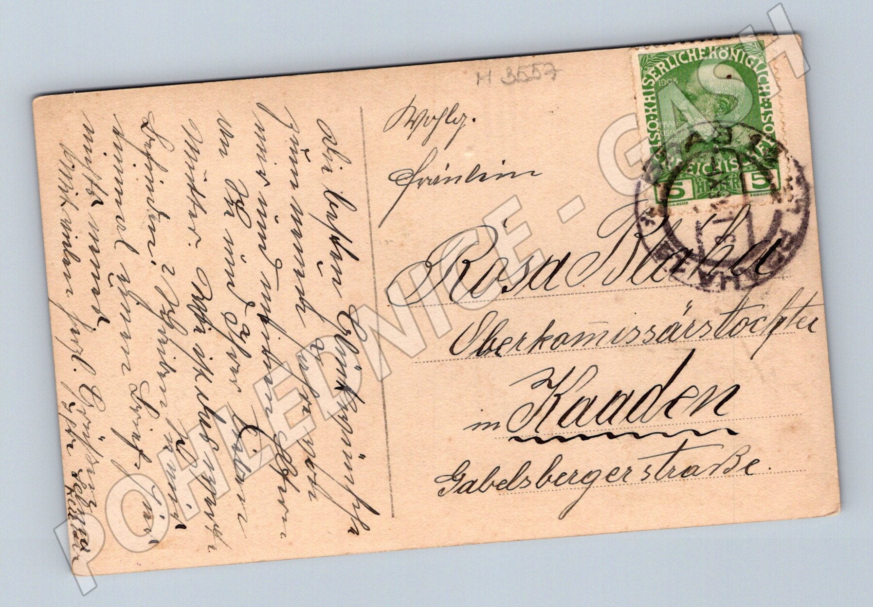 Nabízím originální starou pohlednici s portrétem mladé ženy ve stylu počátku 20. století. Pohlednice je opatřena známkou Rakousko-Uherska a ručně psaným textem. Adresována byla do Kaaden (Kadaň) a byla přepravena poštou. Výrazná a elegantní kresba ženy s ozdobnou čelenkou je typická pro období secese. Celkový stav odpovídá stáří – drobné opotřebení hran. Vhodné pro sběratele historických pohlednic a zájemce o portréty a starou korespondenci.