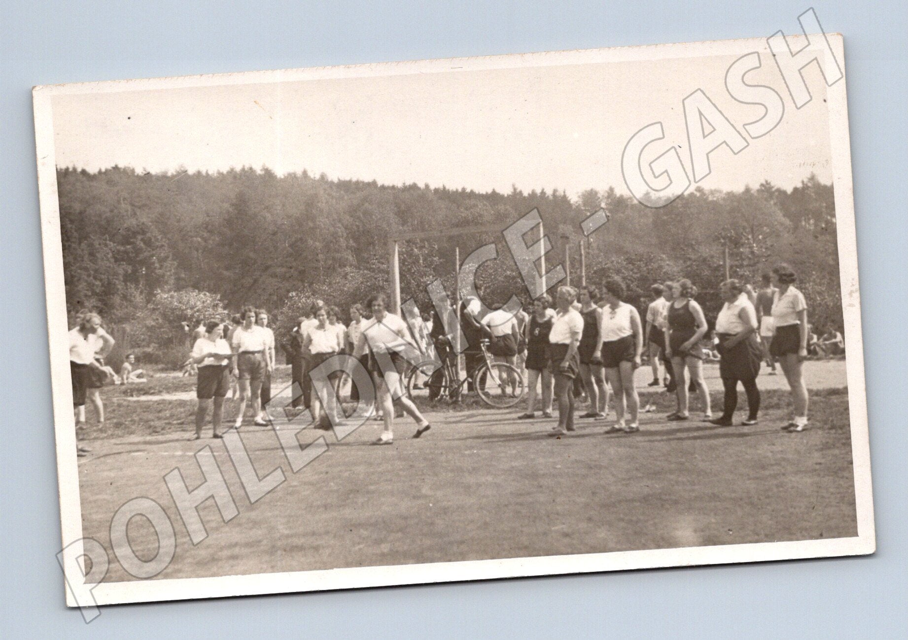 Originální černobílá pohlednice menšího formátu z období první poloviny 20. století. Na fotografii je zachycena větší skupina žen v dobovém sportovním oblečení během venkovního cvičení či sportovního dne. V pozadí je patrná krásná přírodní scenérie s lesem. Zadní strana pohlednice je neprošlá, s francouzským označením Carte Postale a ručně psanou poznámkou. Pohlednice může být zajímavá pro sběratele dobových snímků a zájemce o sportovní či společenskou historii Československa. Celkový stav pohlednice odpovídá stáří, viz foto. Ženy při sportu výcviku Sokol 1934 6 květa zkoušky zdatnosti