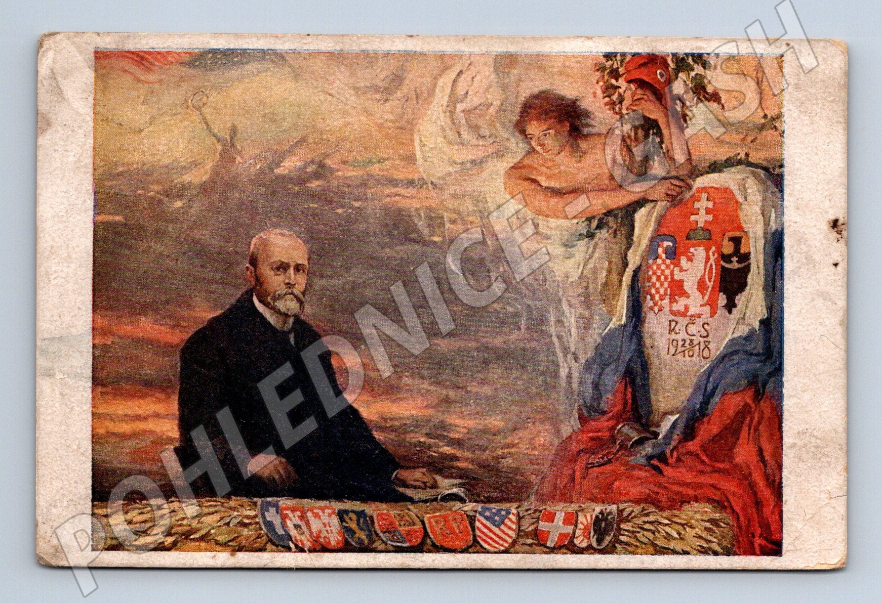 Historická pohlednice T. G. Masaryk – vznik ČSR 1918, použito