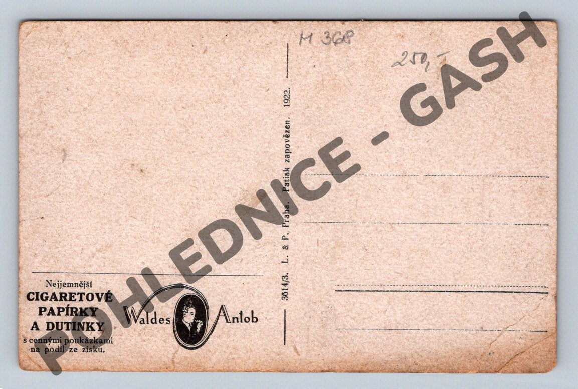 Originální stará pohlednice znázorňuje pražské historické památky - Černou věž a Daliborku na Pražském hradě. Jedná se o černobílou pohlednici typického menšího formátu s patrnými známkami stáří (zažloutnutí, opotřebené rohy). Na zadní straně je natištěná reklama na cigaretové papírky Waldes Antob. Pohlednice nebyla použitá, je čistá a dobře zachovalá vzhledem ke stáří. Ideální pro sběratele historických pohlednic z Čech nebo milovníky Prahy a českých hradů a zámků.