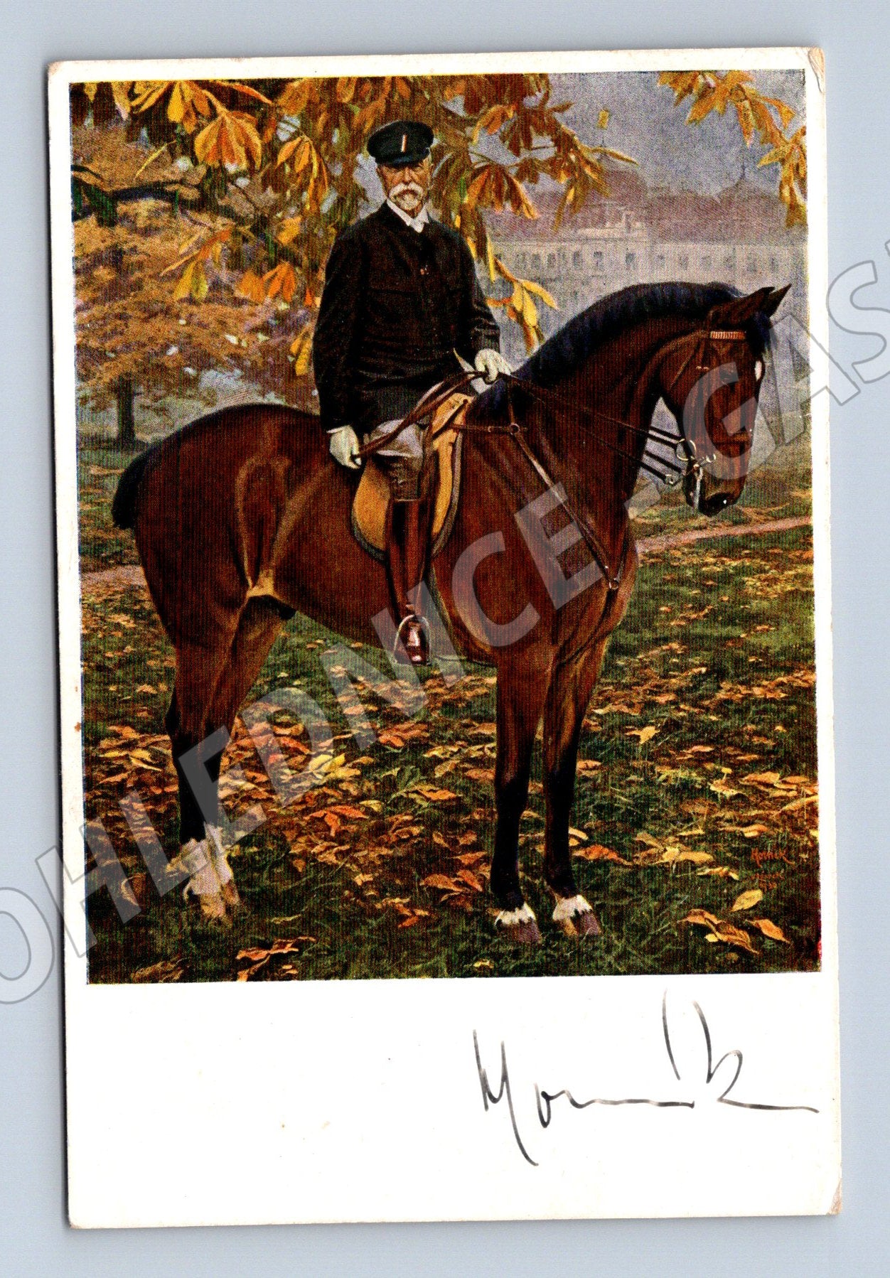 Historická pohlednice s jezdcem na koni, T. G. Masaryk
