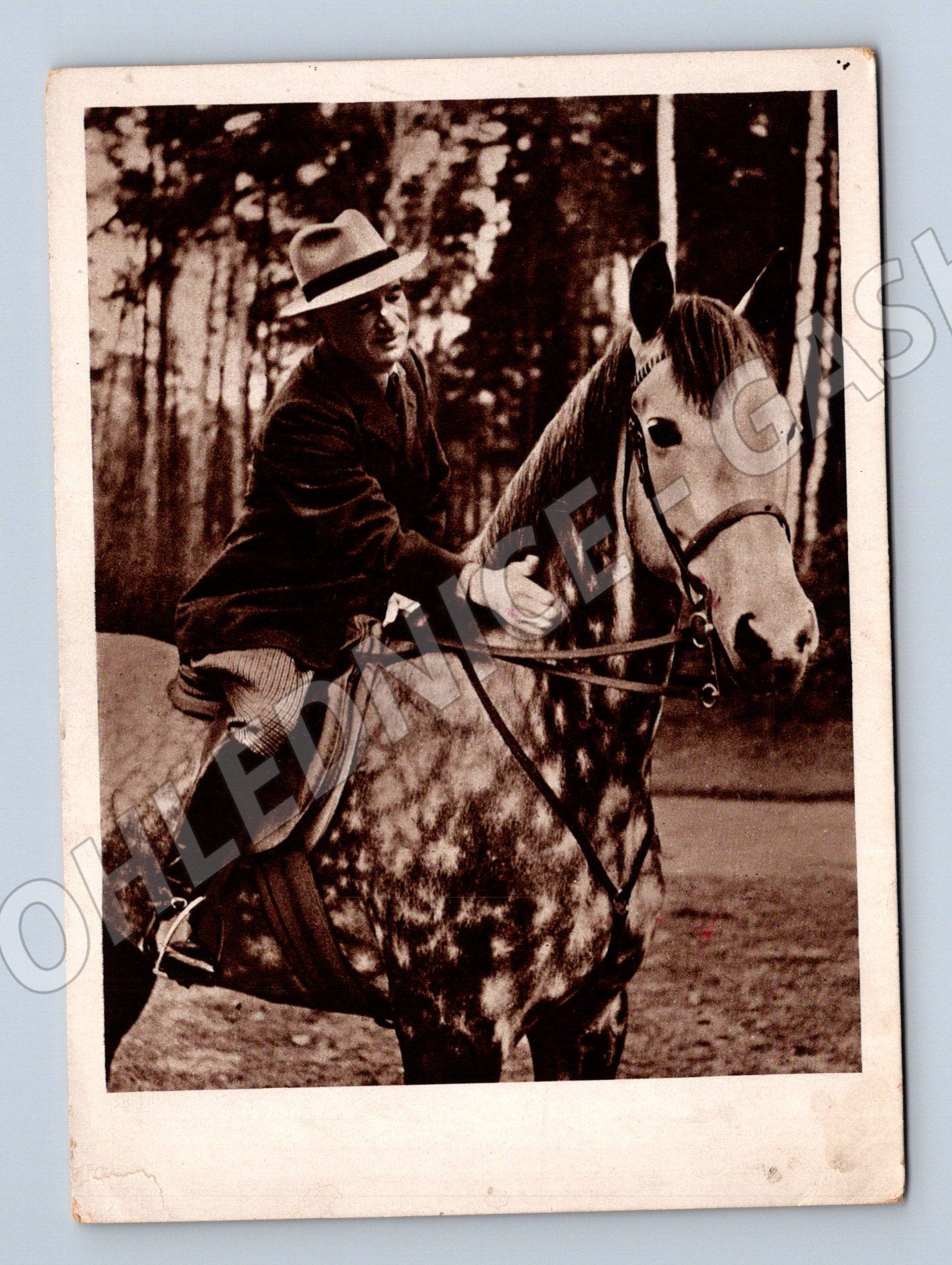 Originální historická pohlednice s portrétem prezidenta Československé republiky Dr. Edvarda Beneše na koni. Černobílá fotografie zachycuje prezidenta v pohybu, v přírodním prostředí. Na zadní straně pohlednice je označení Dr. Edvard Beneš, president Československé republiky . Jedná se o sběratelsky hodnotný kousek vhodný do každé sbírky historických pohlednic a fanoušků československé historie. Pohlednice má standardní rozměr a je v dobrém sběratelském stavu s mírně ohlými rohy odpovídajícími stáří.