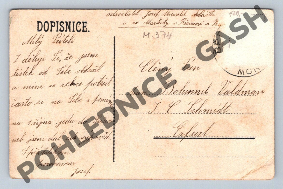 Starobylá pohlednice z období Rakousko-Uherska zachycující Malostranskou mosteckou věž v Praze. Pohlednice je kolorovaná, výrazné dobové zpracování, autentická atmosféra historické Prahy. Na zadní straně je psaný vzkaz a adresa adresáta s poštovním razítkem. Stav odpovídá stáří, drobné známky opotřebení a zašpinění v rozích. Ideální sběratelský kousek pro milovníky historie Prahy a starých pohlednic.