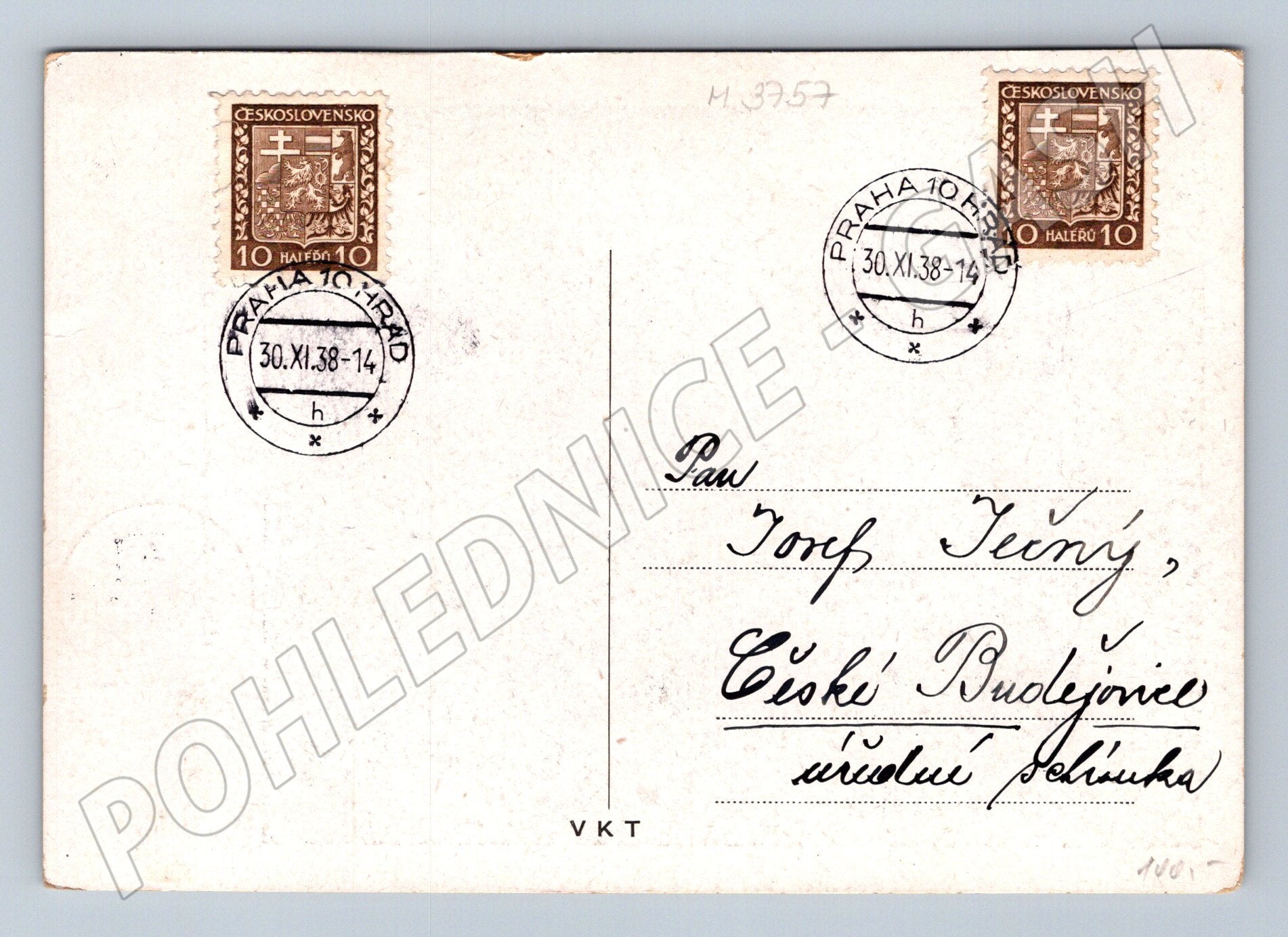 Historická pohlednice s portrétem prezidenta ČSR Dr. Emila Háchy. Na přední straně je černobílý portrét prezidenta, doplněný popisem. Na zadní straně pohlednice jsou dobové známky a poštovní razítka z Prahy z data 30.XI.1938. Pohlednice je adresována do Českých Budějovic a zachycuje osobnost významného československého politika v období druhé republiky. Celkový stav odpovídá stáří, velmi pěkný sběratelský kousek vhodný do sbírky o historii Československa a politických osobnostech meziválečného období.