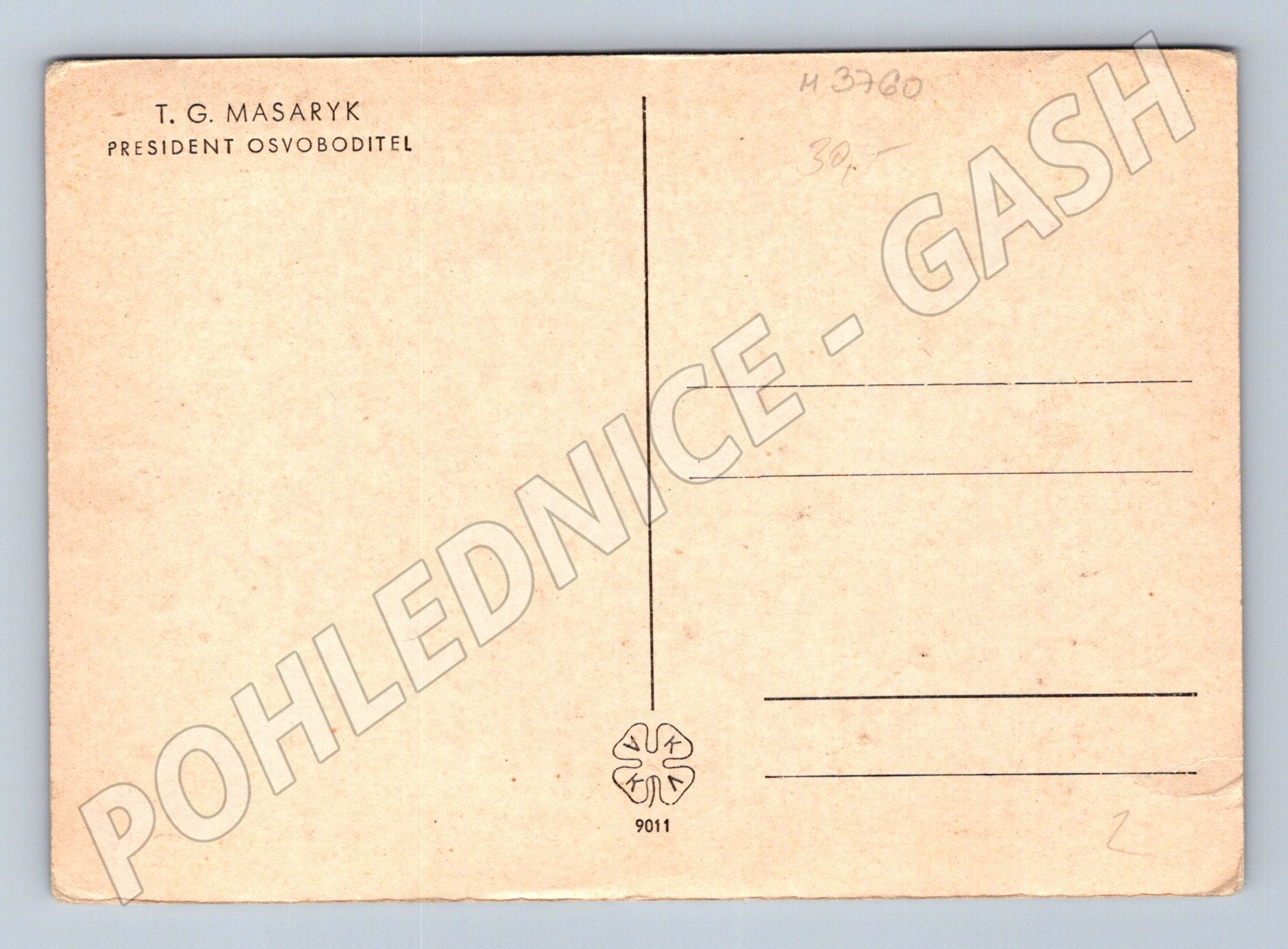 Originální historická pohlednice s portrétem T. G. Masaryka, prvního prezidenta Československé republiky, na koni. Pohlednice v sepia tónu zachycuje Masaryka při oficiální události před rozpoznatelnou budovou. Na zadní straně je uvedeno T. G. MASARYK PRESIDENT OSVOBODITEL . Pohlednice nese znaky doby a drobné známky stáří, jedná se však o unikátní sběratelský kousek. Vhodné pro sběratele historických pohlednic, zájemce o československou historii nebo jako hodnotný dárek. Rozměry pohlednice odpovídají standardnímu malému formátu. Stav viz foto.