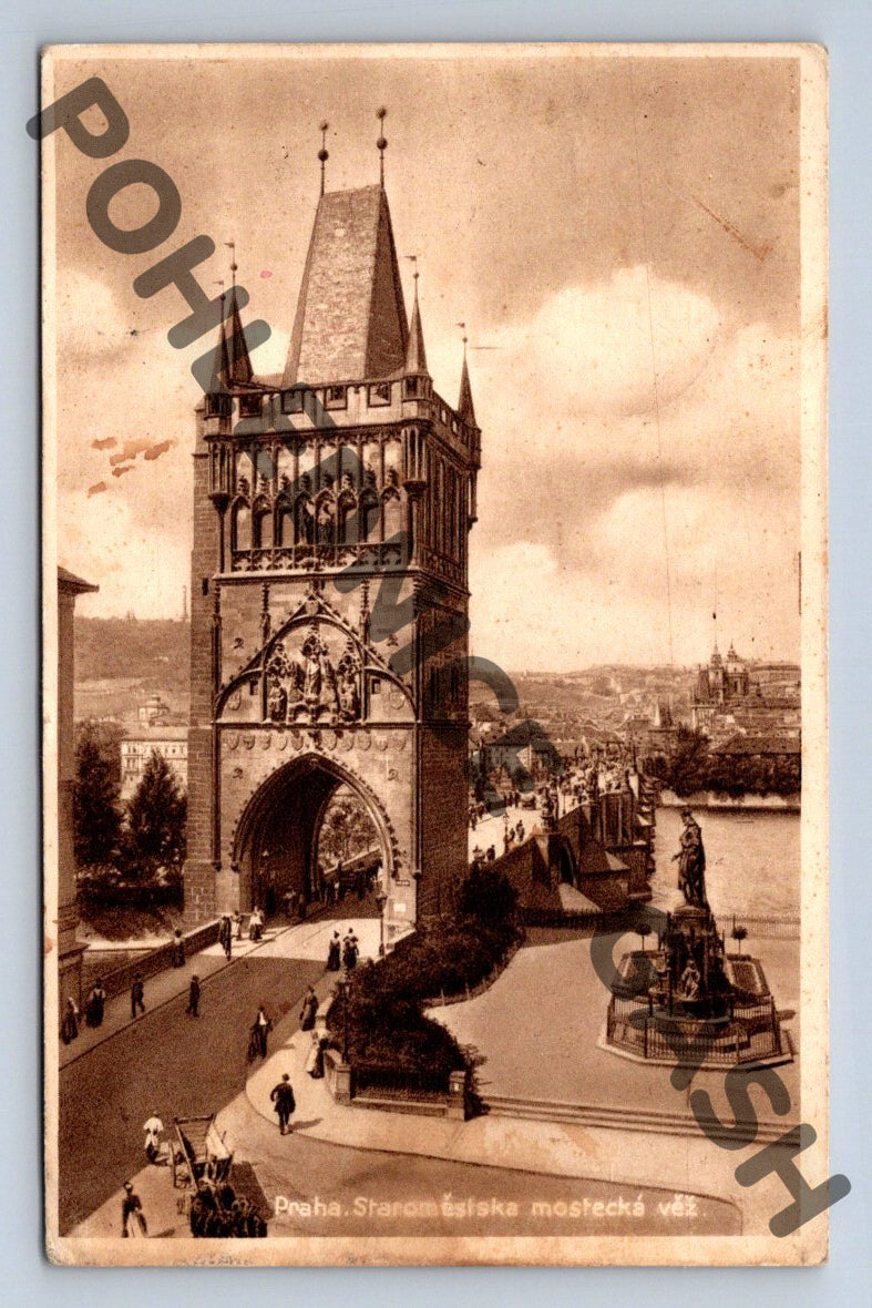 Praha, Staroměstská mostecká věž – historická pohlednice s razítkem