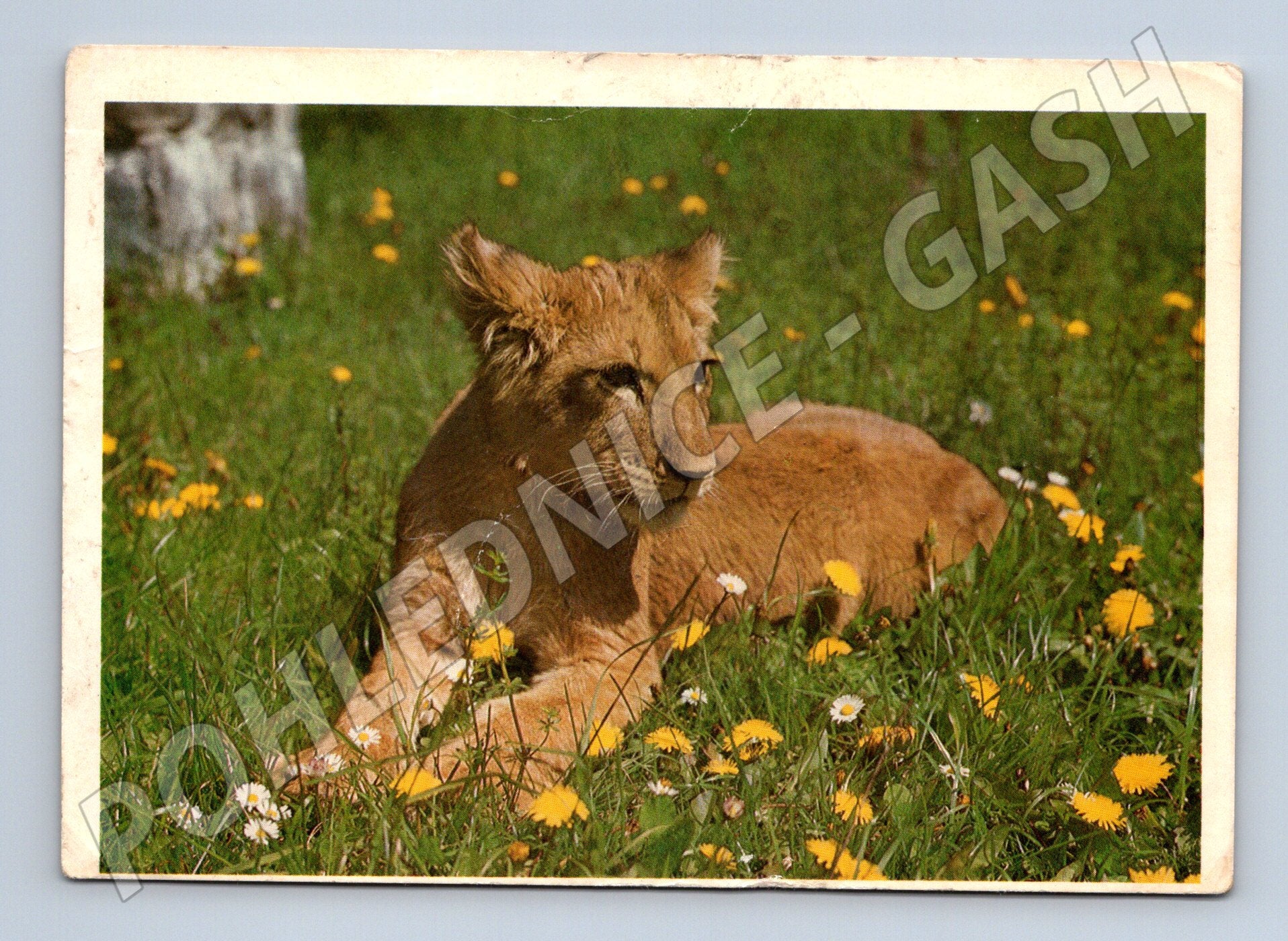Nabízím originální pohlednici se zobrazením mladého lva pustinného (Panthera leo), od RNDr. M. Novackého, tisk Grafobal Skalica. Na pohlednici je mládě lva odpočívající v trávě mezi květinami, krásná barevná fotografie vhodná pro sběratele či milovníky zvířat. Pohlednice je nepopsaná a zachovalá. Na zadní straně krátký popis lva pustinného ve slovenštině. Rozměr standardní, známky mírného opotřebení odpovídající stáří.