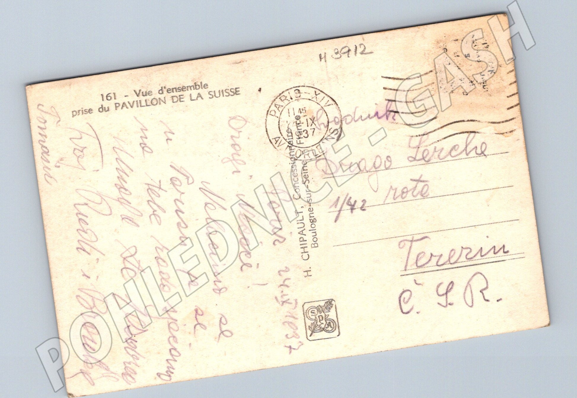 Originální pohlednice z Expozice Internationale v Paříži roku 1937. Pohlednice zachycuje lodní dopravu a pavilony na řece Seina během této světové výstavy. Na lícové straně jsou patrné moderní výstavní objekty i výletní lodě, včetně stylizované lodní kompozici, vlajek a vodního nábřeží typického pro Paříž té doby. Zadní strana obsahuje rukopisné věnování a poštovní razítko z doby před druhou světovou válkou. Výborný historický a sběratelský stav, vhodné do tematické sbírky pohlednic s motivem vodní dopravy nebo výstav.