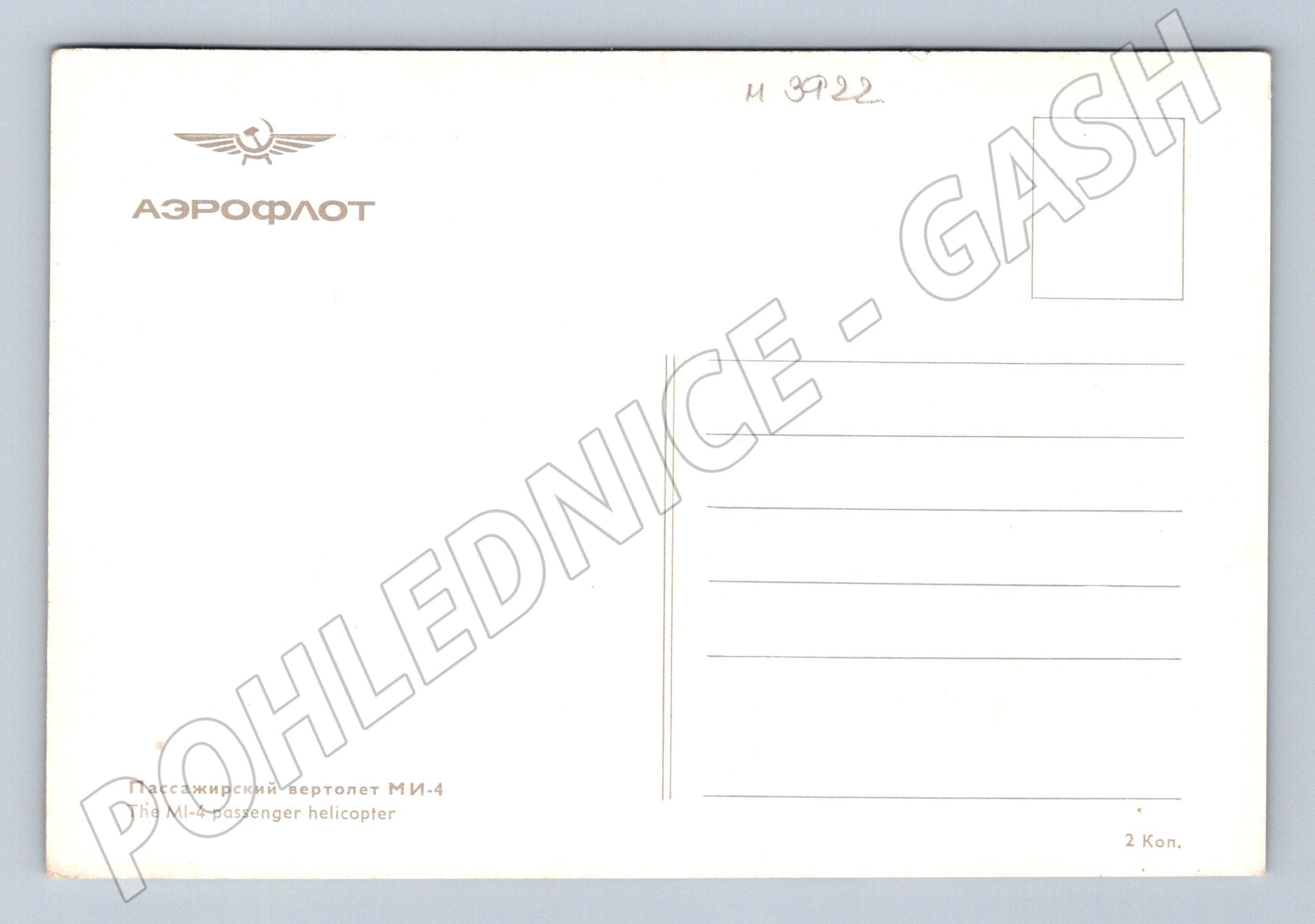Pohlednice Aeroflot – vrtulník Mi-4 (M3922)