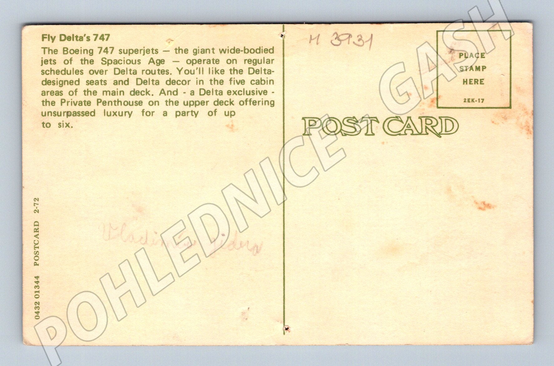 Pohlednice Delta Airlines Boeing 747 – letecká klasika, 1972
