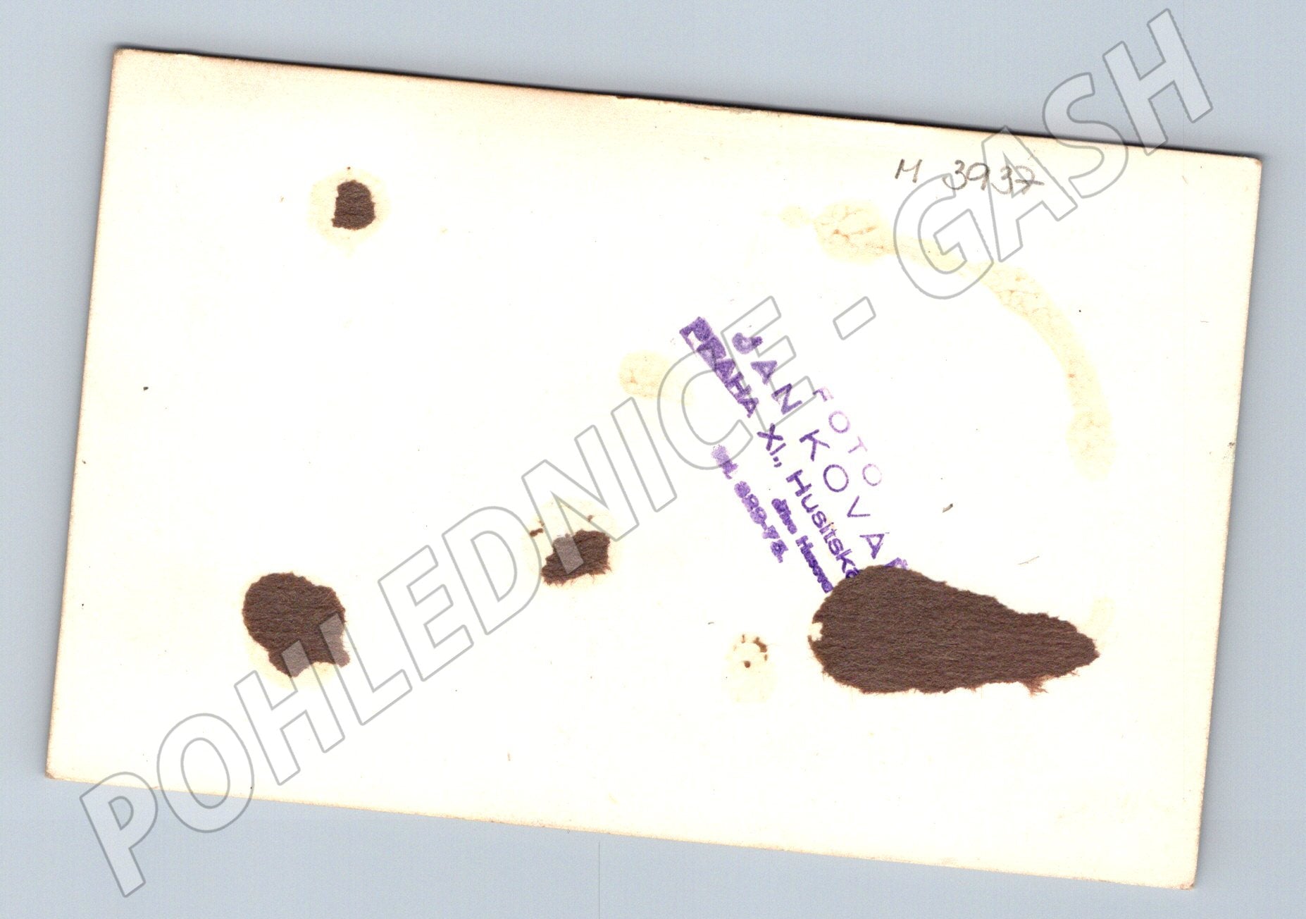 Originální černobílá pohlednice s historickým automobilem zaparkovaným před budovou v městském prostředí. Pohlednice pochází přibližně z první poloviny 20. století. Na zadní straně je podpis/studio Foto Jan Kovář, Praha XI., Husitská . Fotografie zachycuje dobovou atmosféru a detaily karoserie vozu. Zachovalost: pohlednice má na zadní straně několik stop po lepidle nebo tmavých skvrnách, stav viz foto. Skvělý přírůstek pro sběratele historických automobilů i pohlednic s tematikou dopravy.