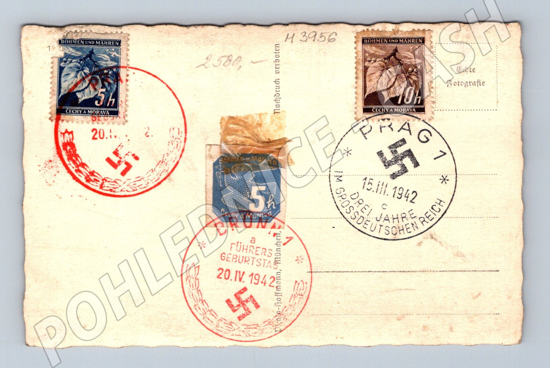 Pohlednice 2. sv. válka 1942, Čechy a Morava, protektorát, známky, razítko