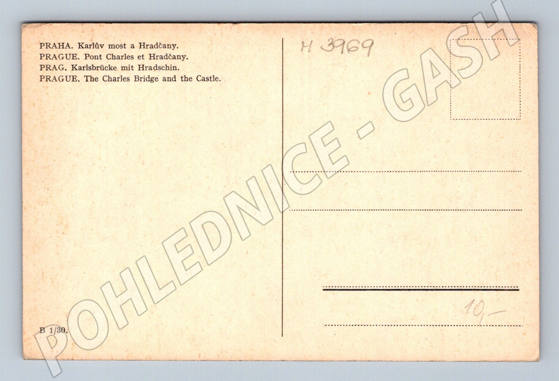 Nabízím originální starou pohlednici s černobílým pohledem na Karlův most a Hradčany v Praze. Pohlednice zachycuje slavnou pražskou památku včetně majestátního Pražského hradu. Popis pohlednice je uveden v několika jazycích (čeština, francouzština, němčina, angličtina). Na zadní straně je úprava pro poštovní použití a známku. Kartička je v dobrém sběratelském stavu s drobnými známkami stáří. Vhodné pro sběratele historických pohlednic, milovníky Prahy i jako dárek.
