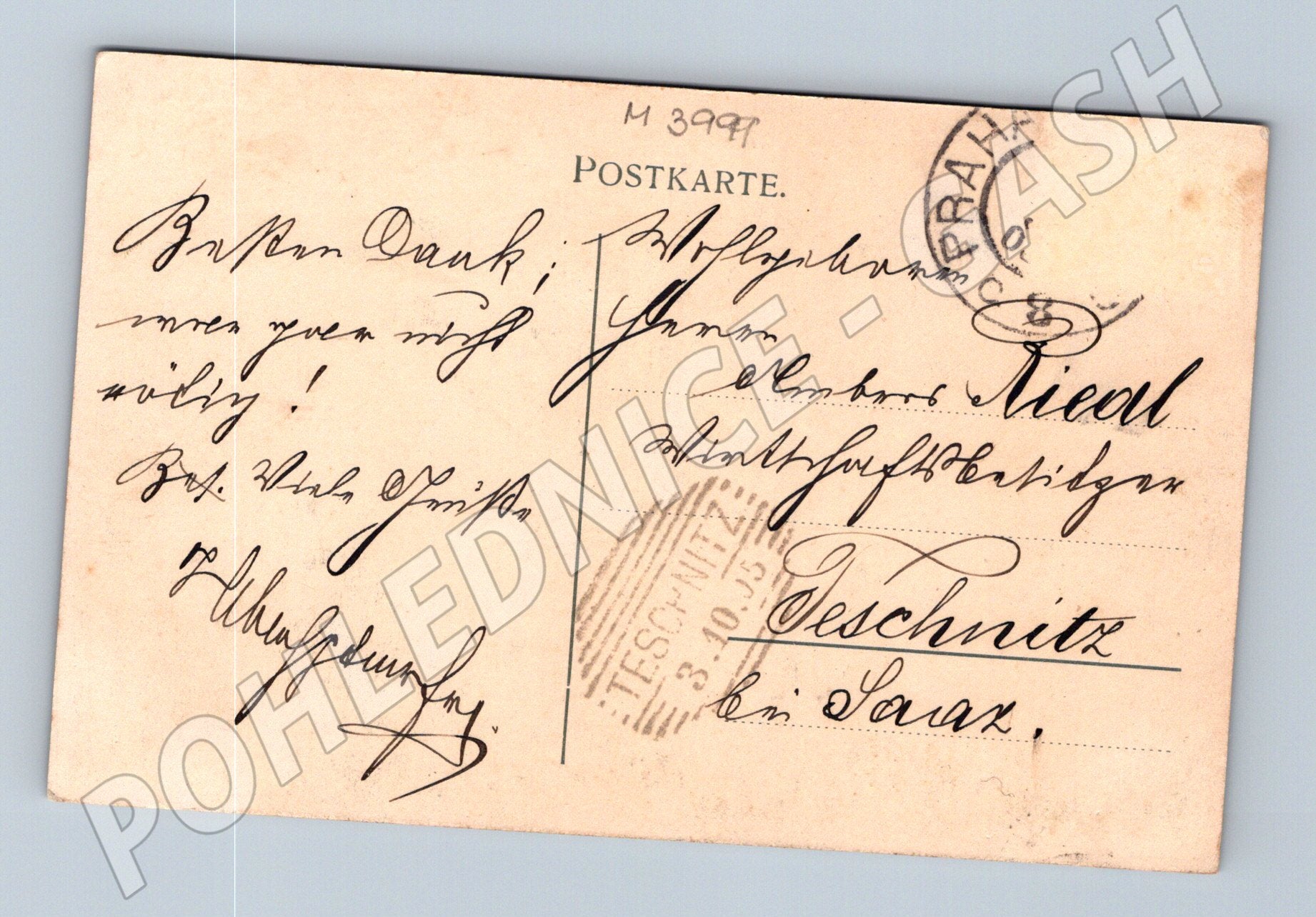 Starobylá pohlednice z období před rokem 1950 s motivem Prahy, konkrétně Karlova mostu a Malé Strany s dominantním Pražským hradem v pozadí. Jedná se o původní kolorovanou pohlednici s německým nápisem Die Karlsbrücke und die Kleinseite a označení města Prag . Na zadní straně je poštovní razítko Praha a podací razítko Teschnitz (Těšnice), stejně jako ručně psaný pozdrav v němčině. Stav odpovídá stáří pohlednice, mírné opotřebení hran, zachovalé barvy a dobová patina. Ideální pro sběratele historických pohlednic z Prahy.