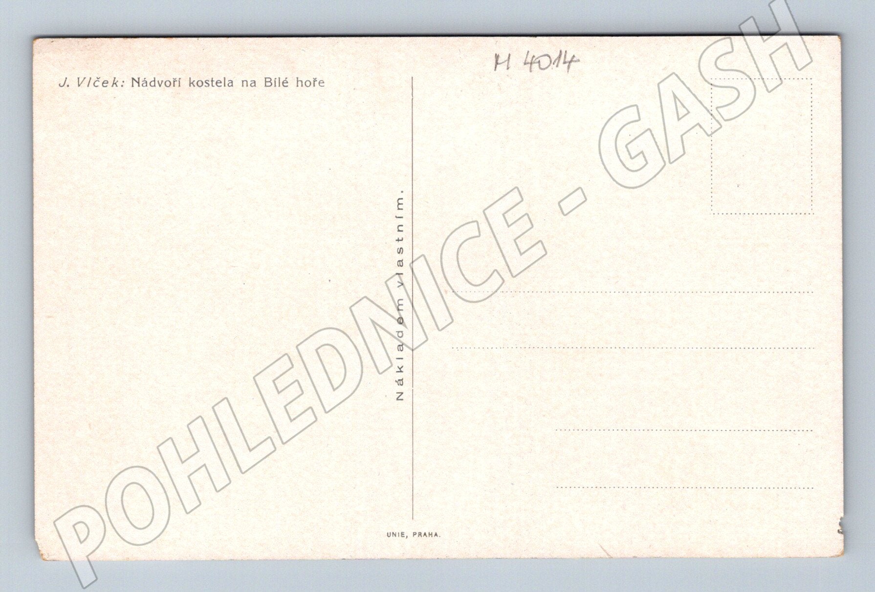 Originální pohlednice se zimní malovanou scenérií nádvoří kostela na Bílé hoře v Praze od J. Vlčka, rok 1928. Pohlednice zachycuje zasněžené stromy a detaily historické architektury poutního areálu. Na zadní straně je uveden autor a název motivu: Nádvoří kostela na Bílé hoře . Vydáno vlastním nákladem, tisk Unie, Praha. Pohlednice je v dobrém stavu, bez známky a bez textu. Skvělý sběratelský kus pro milovníky historických památek a uměleckých pohlednic z ČR.