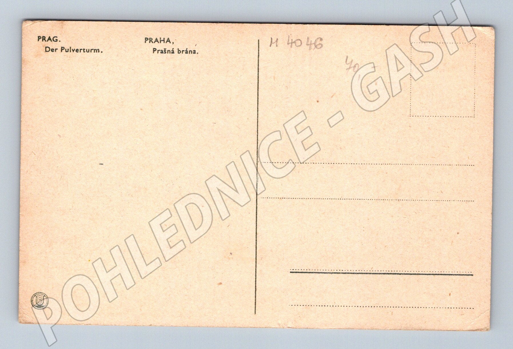 Originální historická pohlednice zobrazující Prašnou bránu v Praze. Pohlednice je vytištěná v hnědém tónu a zachycuje živou atmosféru přelomu 19. a 20. století – v popředí jsou patrní chodci a dobová architektura okolních domů. Na zadní straně pohlednice je nápis PRAG. Der Pulverturm. PRAHA, Prašná brána. , určující lokaci této významné pražské památky. Pohlednice je v dobrém sběratelském stavu, bez viditelných poškození, bez použité známky a popisu.