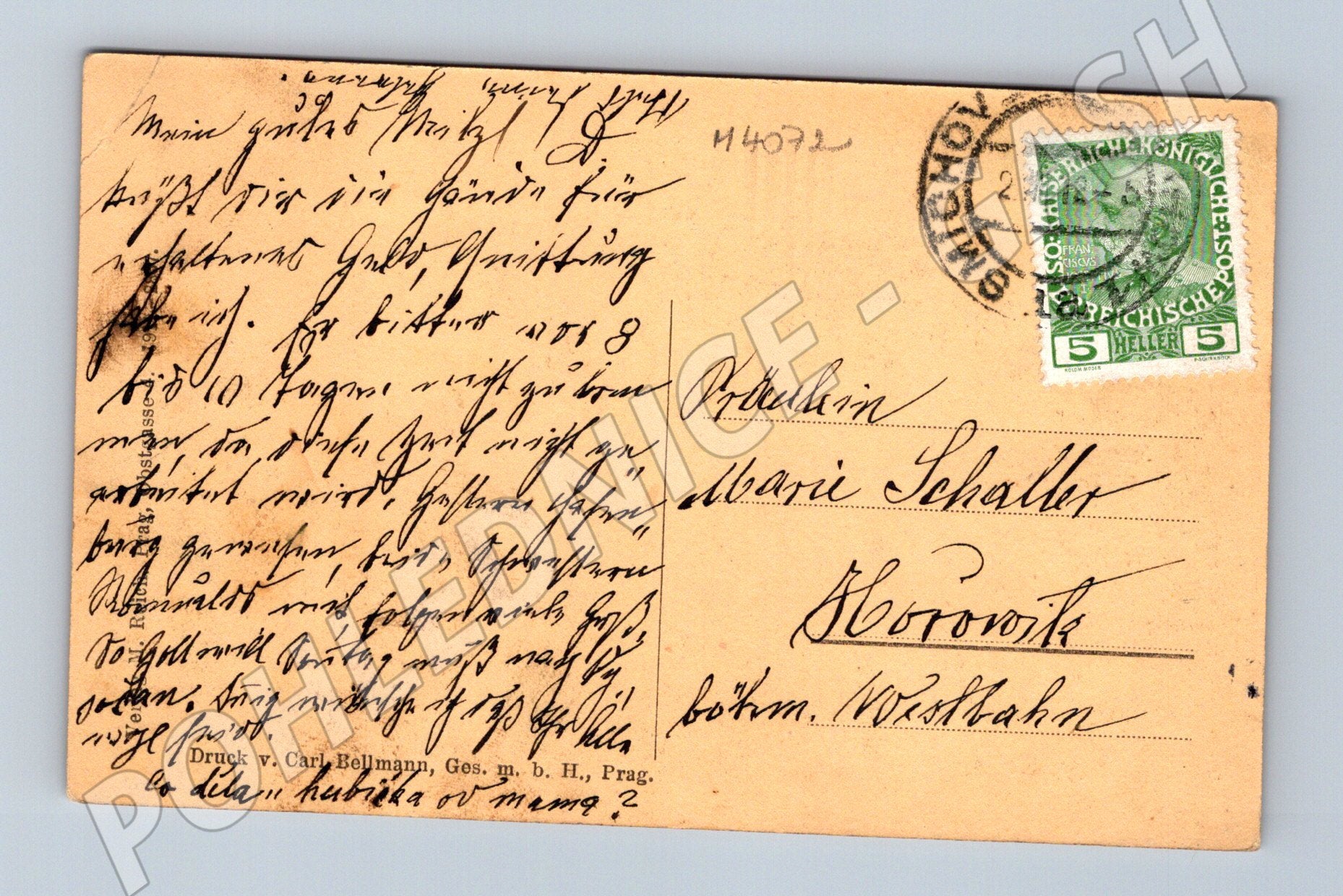 Historická pohlednice s motivem Hradčan v Praze, pohled z Belvederu. Na přední straně je černobílý fotografický snímek s typickým panoramatem Pražského hradu a katedrály sv. Víta. Pohlednice je psaná, opatřená dobovou známkou a razítkem. Vydal Carl Bellmann, Praha. Jedná se o sběratelsky cenný kus z přelomu 19. a 20. století, vhodný pro sběratele starých pohlednic s tématikou historických památek a architektury České republiky. Stav viz foto, drobné opotřebení odpovídající stáří.