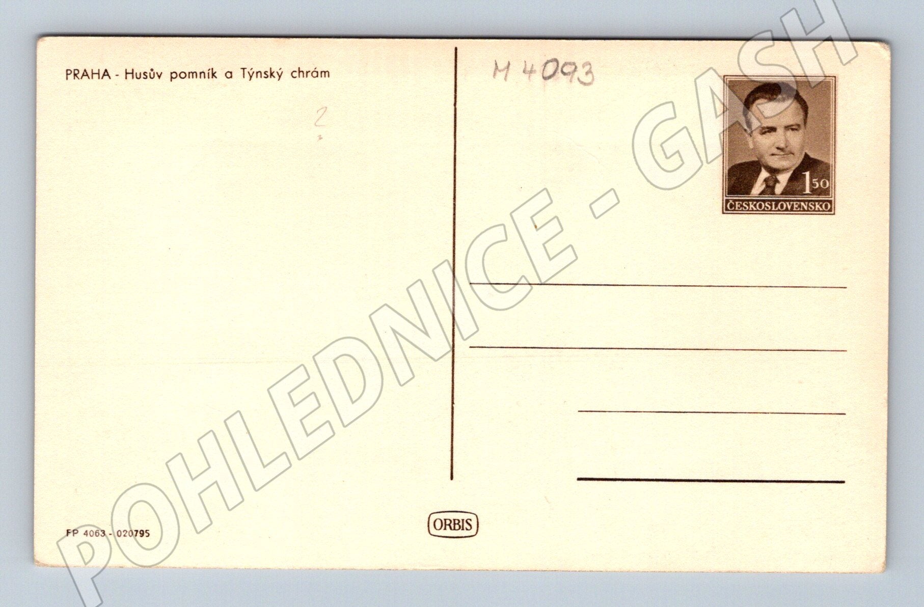 Originální černobílá pohlednice s motivem Prahy – Husův pomník a Týnský chrám na Staroměstském náměstí. Pohlednice zachycuje významnou historickou památku hlavního města. Typický záběr s pomníkem Mistra Jana Husa v popředí a majestátními věžemi Týnského chrámu v pozadí. Samotná pohlednice je nepopsaná, opatřená původními známkami. Vhodné pro sběratele historických pohlednic s tématem Prahy, architektury i české historie. Výrobce: Orbis. Výborný stav, bez poškození.