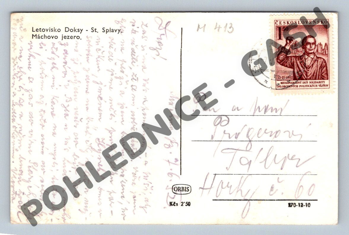 Nabízím sběratelskou pohlednici zobrazující malou plachetnici na Máchově jezeře, konkrétně v letovisku Doksy - Stará splav. Pohlednice je černobílá, zachycuje atmosféru západu slunce nad vodní hladinou, což vytváří krásnou a nostalgickou atmosféru. Na zadní straně je krátký dopis a známka Československa s motivem 1. května 1952, což dokládá dobový původ pohlednice. Rozměry a stav pohlednice odpovídají standardnímu sběratelskému formátu. Ideální k doplnění vaší sbírky českých pohlednic či motivů vodní dopravy a rekreačních lokalit v ČR.