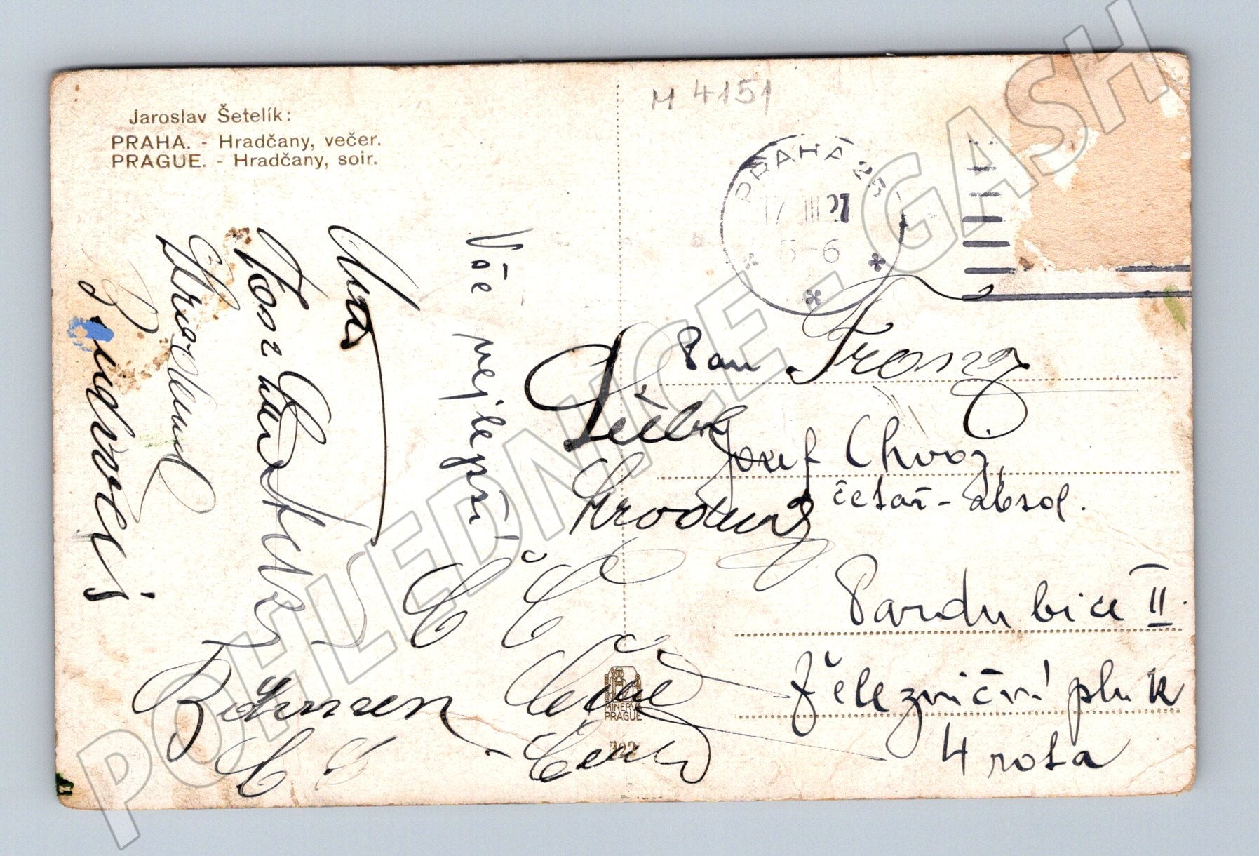 Pohlednice Praha Hradčany večer, Šetelík, prošlá, malý formát