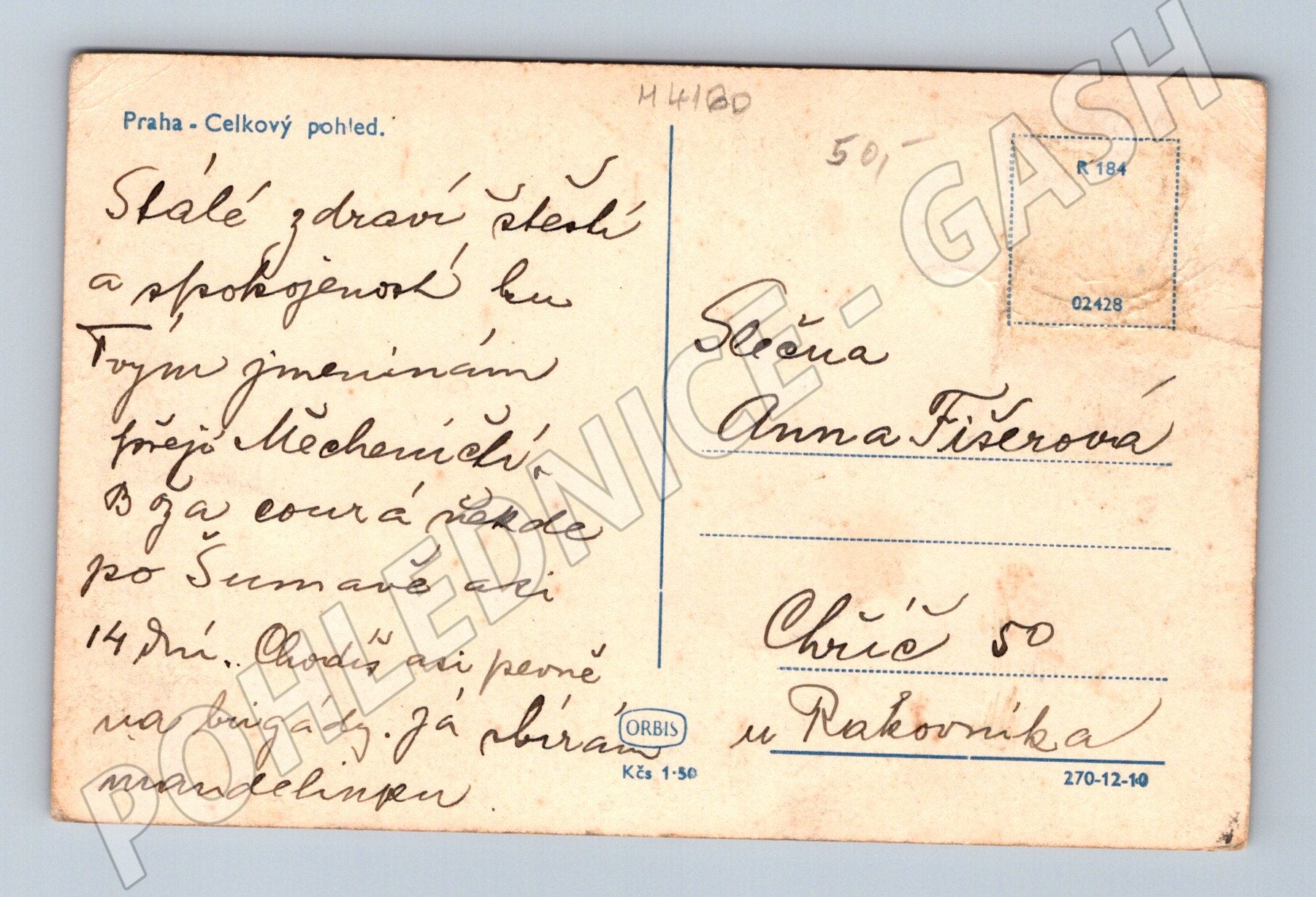 Originální stará pohlednice s celkovým pohledem na Prahu, pravděpodobně z první poloviny 20. století. Na přední straně je krásný černobílý záběr historického centra Prahy s výhledem na Pražský hrad, Karlův most a další ikonické památky. Na zadní straně je ručně psaný vzkaz a adresa příjemce, známky chybí. Pohlednice nese typické známky stáří, je mírně zažloutlá a na okrajích jsou patrné drobné oděrky. Jedná se o autentický sběratelský kousek vhodný pro milovníky starých pohlednic, Prahy či historie. Rozměr malý formát. Skvělý doplněk do vaší sbírky!