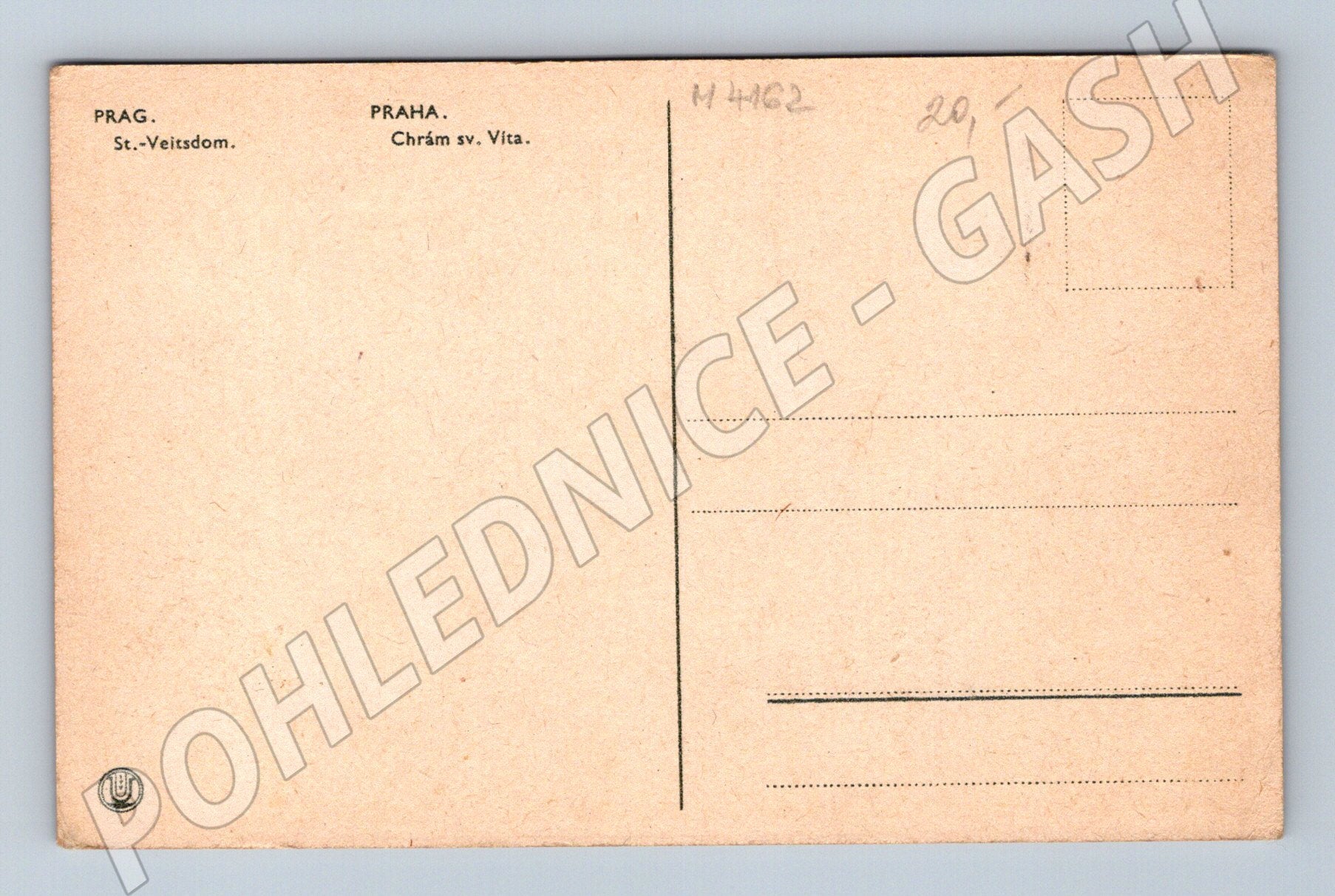 Nabízím originální pohlednici se zobrazením Chrámu sv. Víta v Praze (St.-Veitsdom). Pohlednice je ve velmi dobrém sběratelském stavu, bez popisu a razítka, neprošlá poštou. Jedná se o klasickou černobílou (sepiovou) fotografii zachycující jeden z nejvýznamnějších českých hradů a sakrálních staveb. Zadní strana pohlednice je potištěná základními informacemi (nápis v češtině i němčině). Ideální doplněk do sbírky historických pohlednic z Prahy či milovníky architektury a památek. Rozměr klasický, bez poškození rožků.