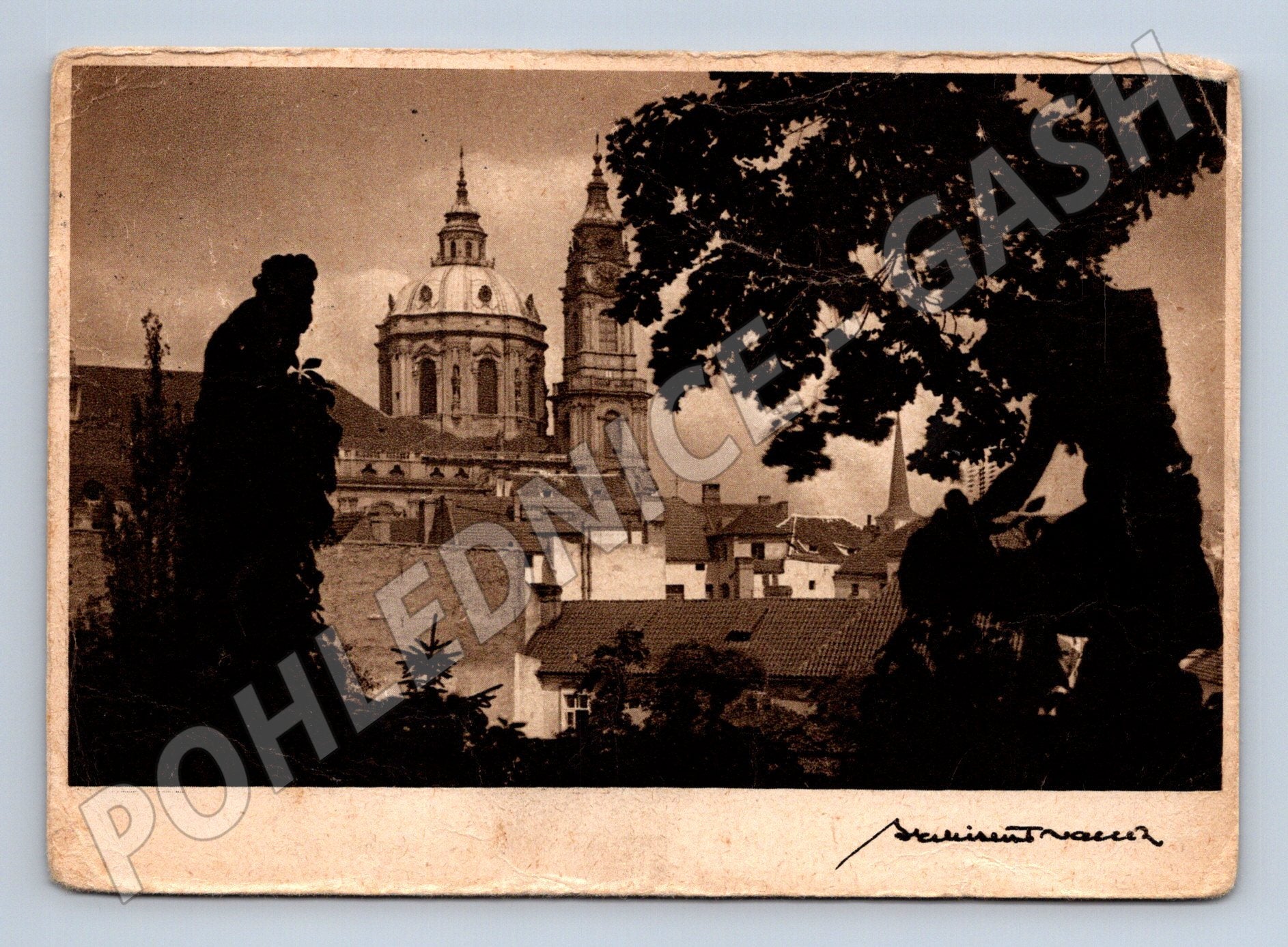 Originální historická pohlednice s černobílým pohledem na chrám sv. Mikuláše a Malou Stranu v Praze. Autorem fotografie je známý český fotograf Karel Minář. Pohlednice byla odeslána z Prahy a nese známku Československo 30hal s portrétem historické osobnosti. Na zadní straně rukopisná zpráva adresovaná slečně Anně Žákové do Písku. Pohlednice nese oběh a známky stáří včetně mírného opotřebení na okrajích. Skvělý sběratelský kus pro milovníky historických pražských motivů a sběratele pohlednic z období První republiky či meziválečného Československa.