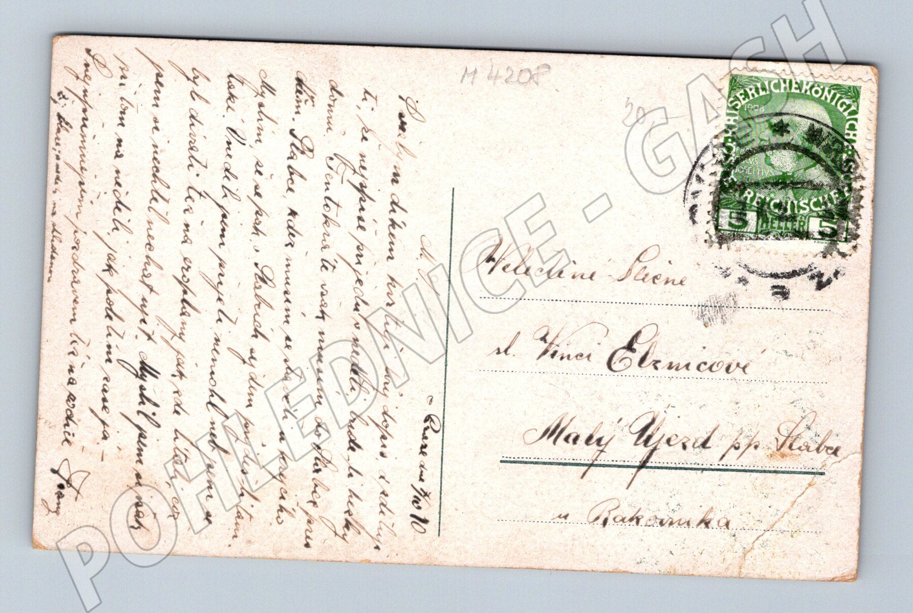 Originální historická pohlednice s vyobrazením chrámu sv. Víta na Pražském hradě v Praze. Jedná se o malý formát pohlednice, přibližně z počátku 20. století, což dokládá i poštovní razítko s rokem 1908 a dobová známka Rakousko-Uhersko. Pohlednice je použita, s ručně psaným textem na zadní straně. Stav odpovídá stáří – mírně ošoupané rohy a jemné stopy používání, bez výrazných poškození. Skvělý sběratelský kus s motivem významné pražské památky.