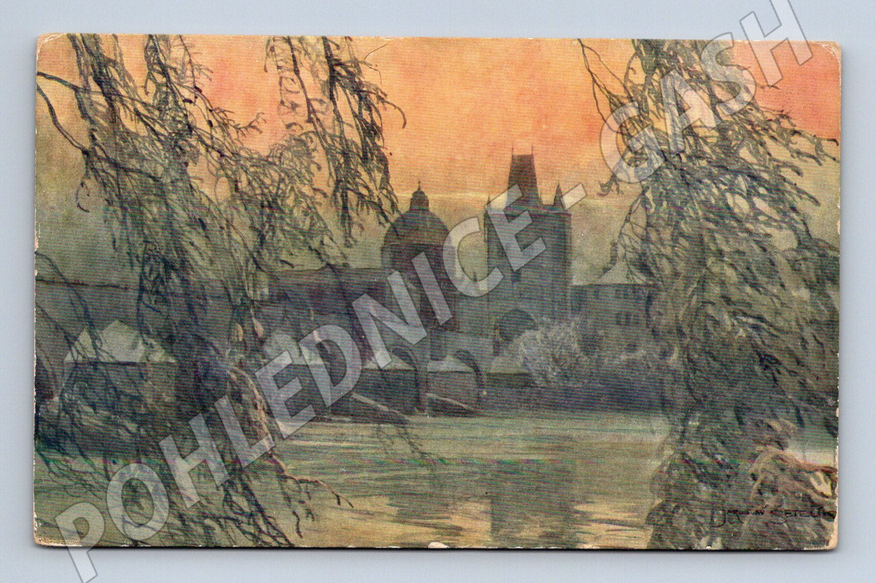 Nabízím starou pohlednici s motivem Karlova mostu v Praze, zachycenou v podzimní či zimní atmosféře s větvemi stromů v popředí. Pohlednice pochází z počátku 20. století, byla odeslána a nese známku Rakousko-Uherska s portrétem Franze Josefa I. Datace dle poštovního razítka je zřejmě z období kolem roku 1908. Zadní strana je popsána ručně psaným textem a je adresována do Vršovic. Skvělý sběratelský kousek pro milovníky historických pohlednic či pragensií. Rozměr malý formát, tisk z období před rokem 1950.