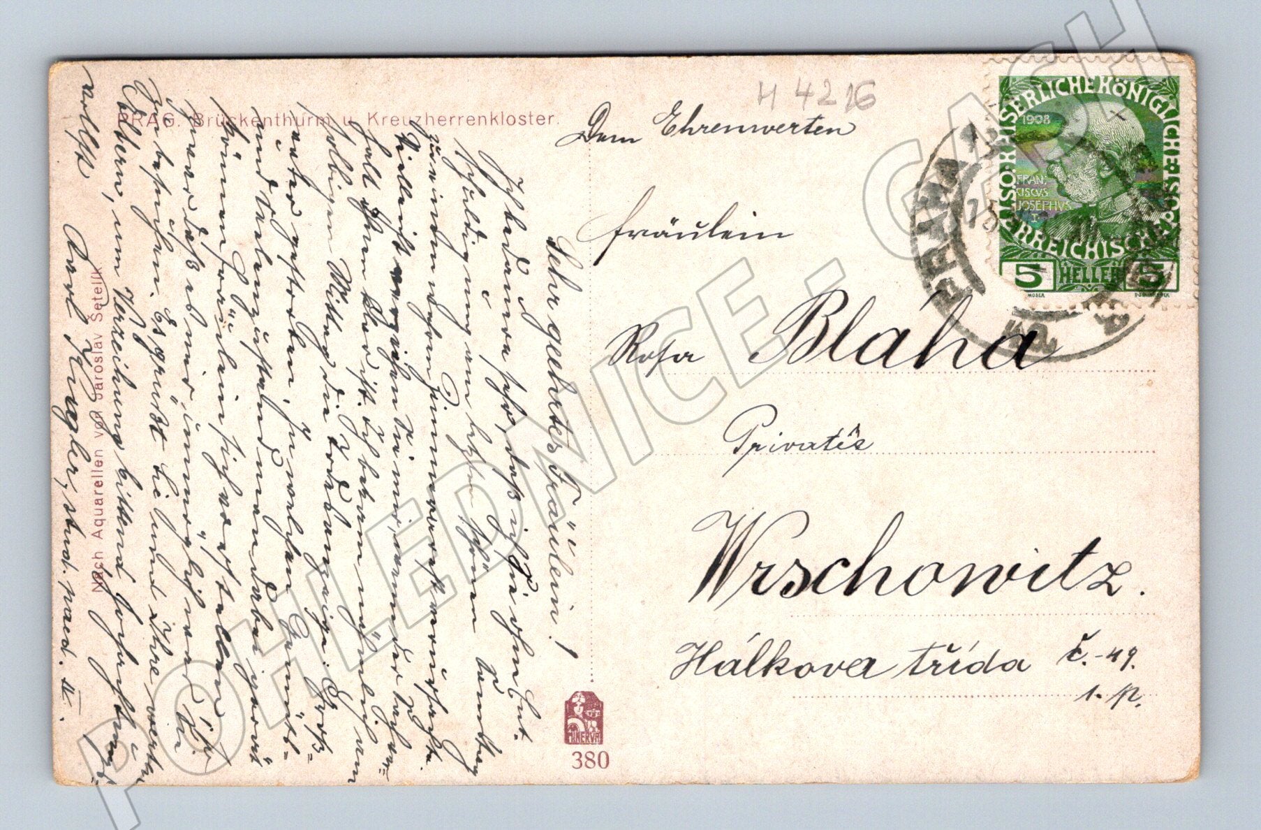 Stará pohlednice Praha – Karlův most, cca 1908, malý formát