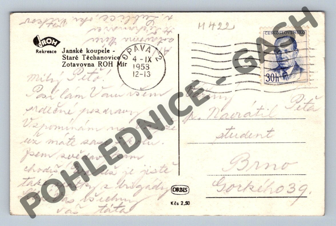 Pohlednice Janské koupele Staré Těchanovice ROH 1953
