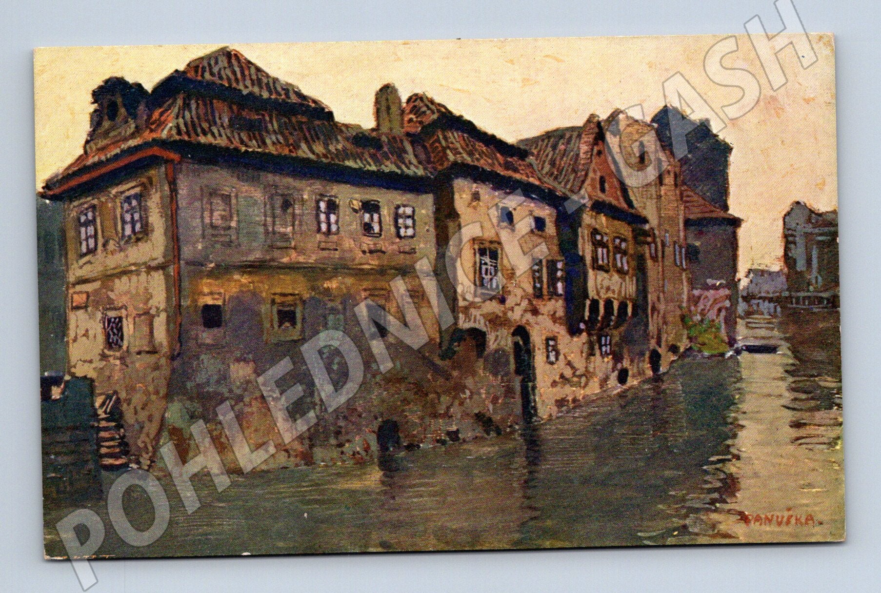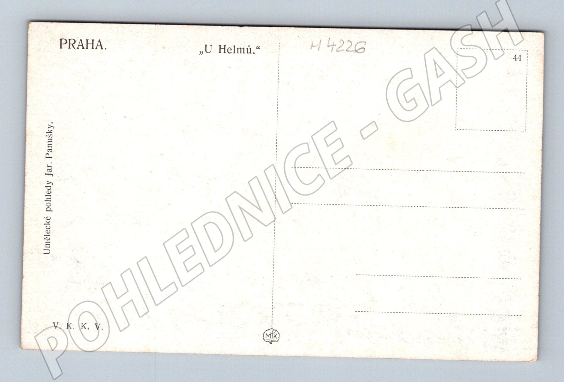 Originální stará pohlednice s motivem známého malířského díla od Jaroslava Panusky - zobrazuje pražský dům U Helmů při vodní hladině. Pohlednice je z edice Umělecké pohledy Jar. Panusky a nese typické znaky starých uměleckých pohlednic. Na zadní straně je uveden název PRAHA. U Helmů a vydavatel V.K.K.V. Pohlednice nebyla použitá, bez známky a bez textu. Je v pěkném stavu, vhodná pro sběratele historických pohlednic i milovníky umění a Prahy. Ideální přírůstek do sbírky uměleckých pohlednic!