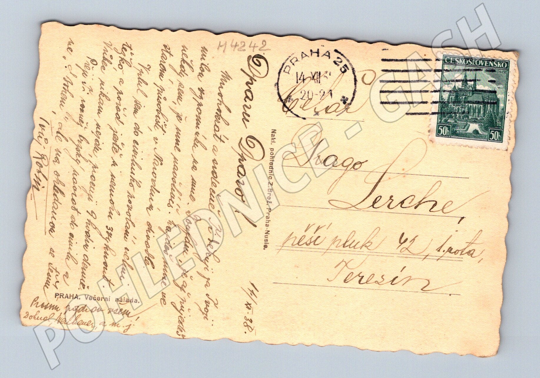 Staropražská pohlednice – Pražský hrad, večerní nálada, 1921
