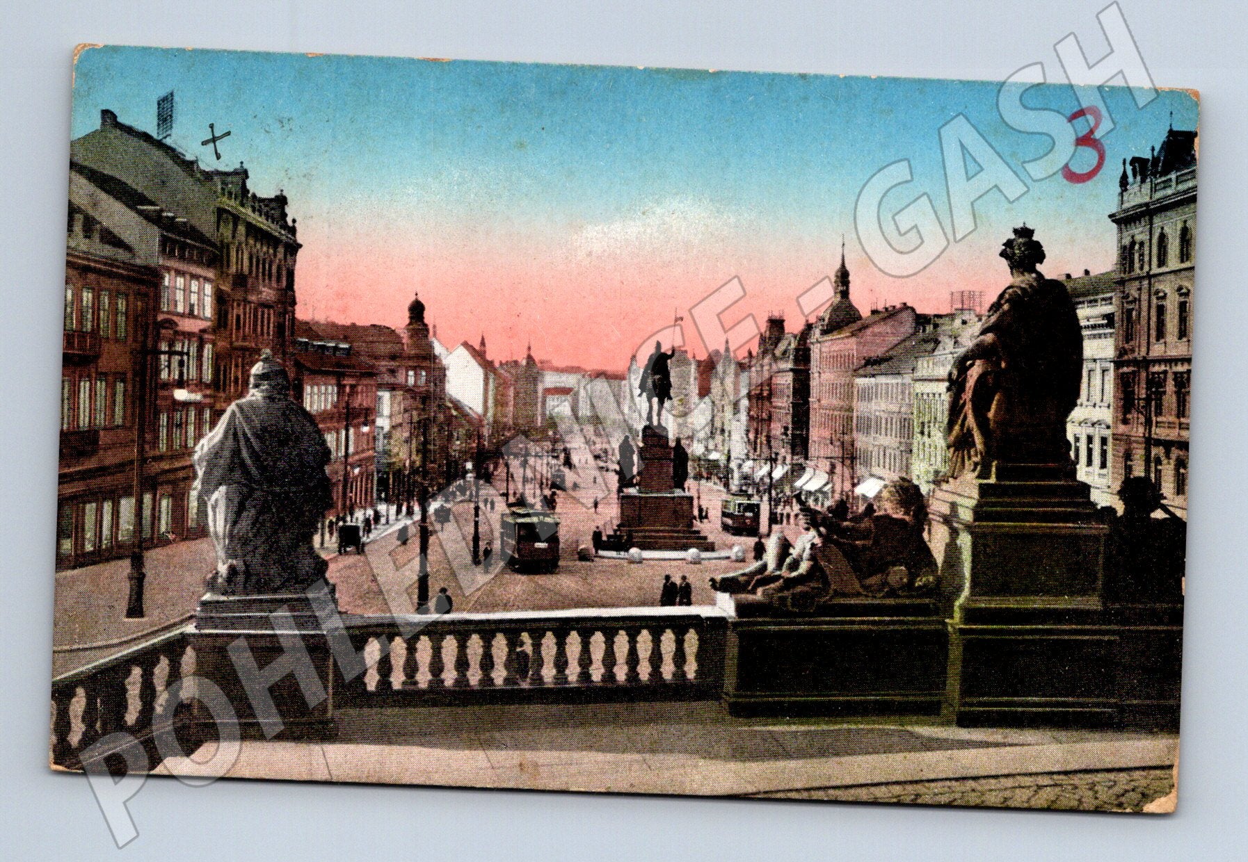 Nabízím starou pohlednici s motivem pražského Václavského náměstí. Jedná se o kolorovanou pohlednici malého formátu z doby Rakousko-Uherska s poštovním razítkem a známkou. Pohlednice zachycuje historickou podobu náměstí s tramvajemi a sochami v popředí, na zadní straně je klasické rozvržení pro adresu a krátký vzkaz v češtině. Výborný sběratelský kousek, vhodný do sbírky pražských pohledů nebo historických pohlednic z Čech. Stav dle fotografií, mírné opotřebení odpovídající stáří. Rok zaslání i známka umocňují autentičnost a dobovou hodnotu pohlednice.