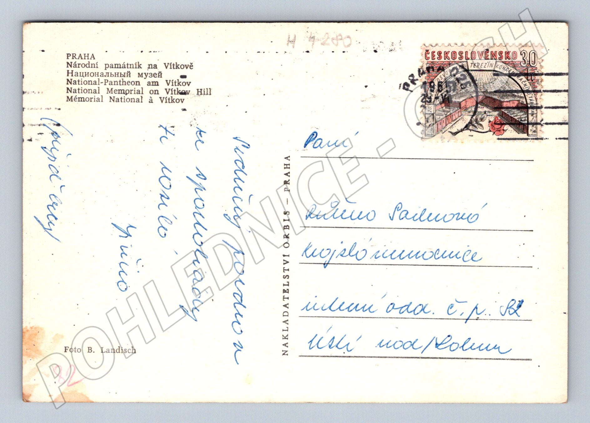 Praha - Národní památník na Vítkově, historická pohlednice, malý formát