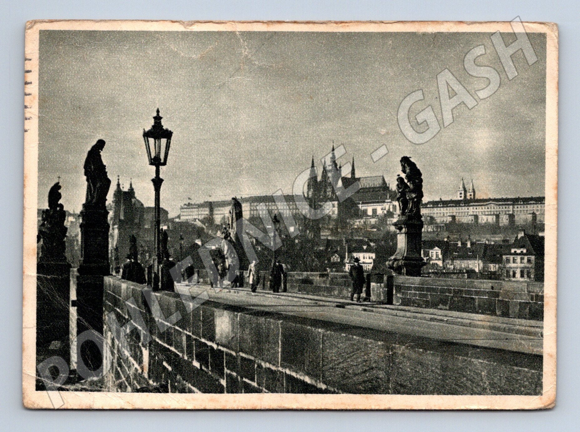 Originální historická pohlednice s motivem Pražského hradu a Karlova mostu, pravděpodobně z období krátce po druhé světové válce. Na přední straně je nádherný černobílý snímek Karlova mostu s pohledem na sochy a slavný Pražský hrad v pozadí. Zadní strana je orazítkovaná poštovním razítkem z Prahy, datovaným k 3. 6. 1946, s krátkým osobním vzkazem. Pohlednice má drobné známky stáří a opotřebení – viz fotografie. Jde o sběratelsky velmi zajímavý kus dokumentující poválečnou atmosféru Prahy. Skvělý doplněk do sbírky historických pohlednic nebo pro milovníky Prahy a její historie.