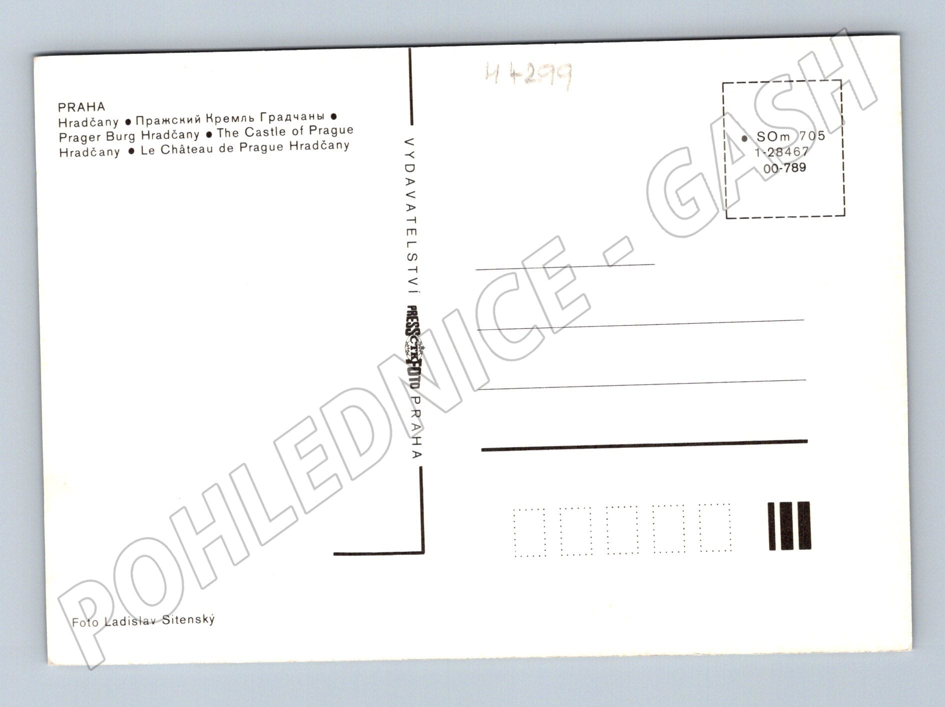 Originální pohlednice s motivem zimních Hradčan a Pražského hradu. Snímek zachycuje zasněžené větve stromů v popředí a ikonickou siluetu hradu v pozadí. Pohlednice neprošlá poštou, čistá zadní strana, vydáno v Praze, fotografie Ladislav Sitenský. Popisky v několika jazycích na zadní straně. Skvělý doplněk do sbírky starých pohlednic z Prahy nebo pro milovníky historických záběrů hlavního města.
