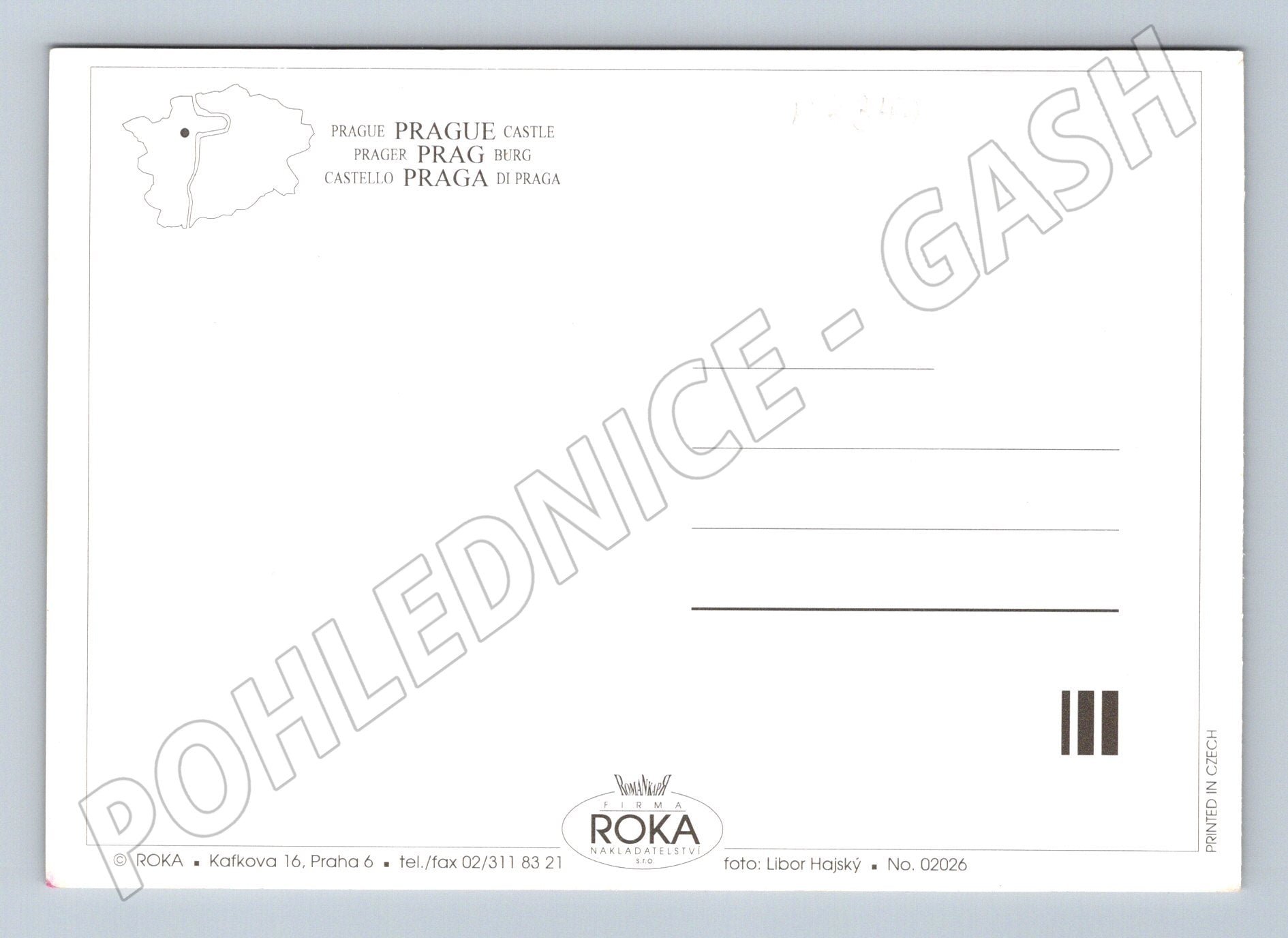 Barevná pohlednice zobrazující Prašnou bránu a Obecní dům v centru Prahy. Na přední straně je výrazná fotografie s krásně zachycenými detaily architektury historických staveb, pod modrou oblohou. Na zadní straně klasické rozvržení pro adresu, známku a krátkou zprávu. Pohlednice je vydána nakladatelstvím ROKA, foto Libor Hajský, evidenční číslo 02026. Výborný stav, neprošlá poštou, vhodná do sbírky nebo jako suvenýr z Prahy.