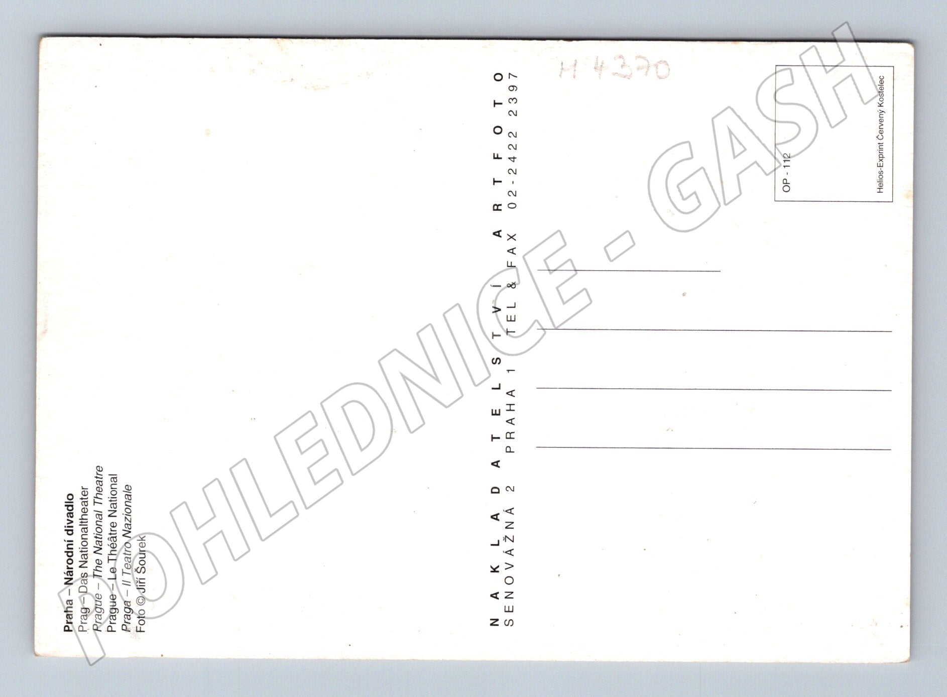 Pohlednice s barevným záběrem na Národní divadlo v Praze. Na lícové straně je krásný pohled na monumentální budovu Národního divadla a její okolí u řeky Vltavy, zachycený ve večerním slunci. Jedná se o moderní velkoformátovou pohlednici, vydanou nakladatelstvím Artfoto (Praha 1, Senovážná 2), foto: Jiří Šourek. Na zadní straně nezaškrtnutá, čistá, připravena k zaslání nebo pro sběratele. Výborný stav, ostré barvy i detaily. Ideální doplněk do sbírky pohlednic zaměřených na architekturu nebo pražské památky.