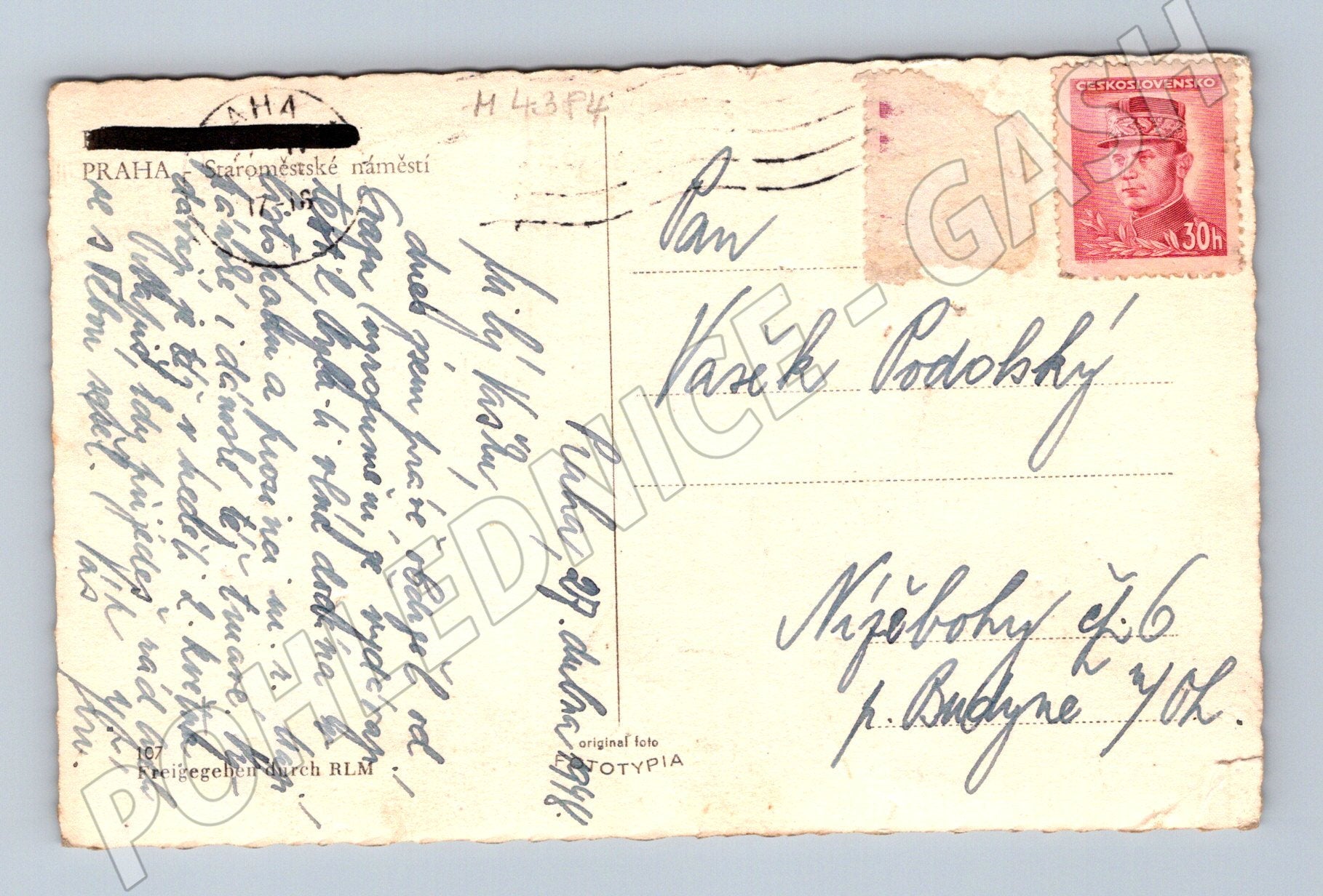 Originální černobílá pohlednice zachycující Staroměstské náměstí v Praze. Na pohlednici je výrazně vidět dominanta náměstí – kostel sv. Mikuláše a sousední historické budovy. Pohlednice byla zaslána, na zadní straně je známka s portrétem československého prezidenta, rukopisná zpráva a adresa příjemce. Pohlednice nese lehké známky stáří (mírné opotřebení rohů). Velmi zajímavý sběratelský kousek s autentickou atmosférou první poloviny 20. století.