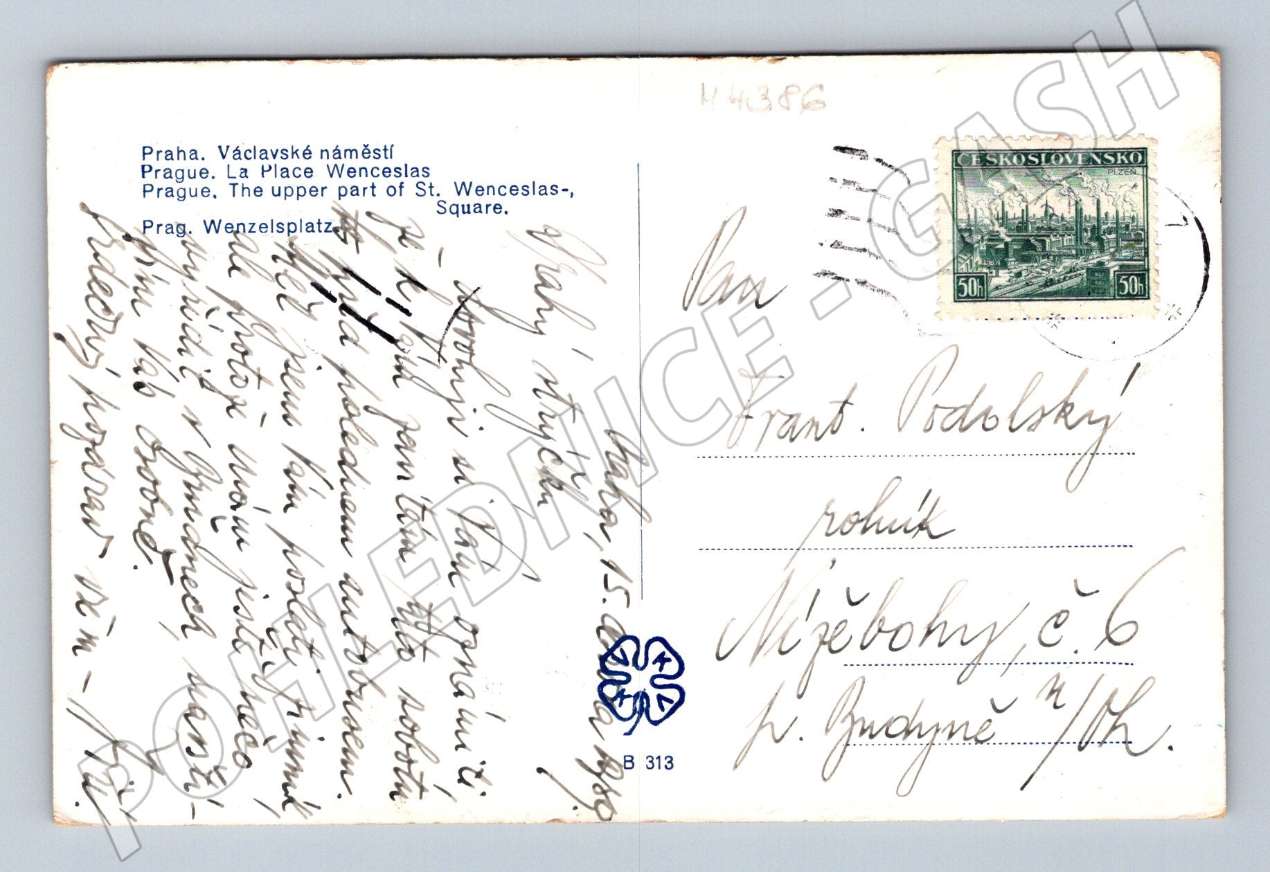 Nabízím původní černobílou pohlednici s motivem horní části Václavského náměstí v Praze, s pohledem směrem k budově Národního muzea. Pohlednice byla odeslána z období první poloviny 20. století, s původní čs. známkou a ručně psaným textem. Zaznamenává autobusovou a tramvajovou dopravu, dobové automobily a architekturu, včetně podrobností tehdejšího městského života. Skvělý sběratelský kousek s autentickou patinou, vhodné pro milovníky historie Prahy, architektury i dopravy. Stav dle fotografií, včetně známky a adresy na zadní straně.