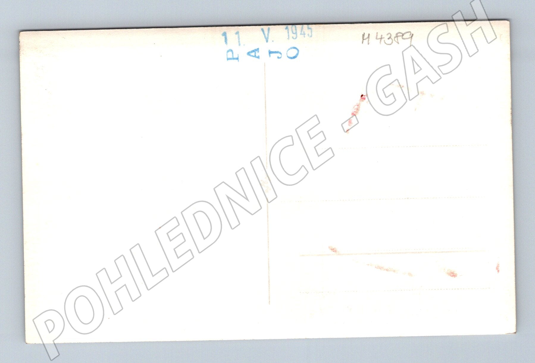 Originální černobílá pohlednice zobrazující poničenou část historického objektu, pravděpodobně hradu nebo zámku po bombardování či poškození na konci druhé světové války. Na zadní straně je ručně dopsané datum 11. V. 1945, které může poukazovat na období bezprostředně po ukončení války. Pohlednice má klasický formát a je ve velmi dobrém sběratelském stavu. Jedná se o unikátní historický dokument zachycující stav památky z přelomového období. Skvělý přírůstek do sbírky pohlednic zaměřených na hrady, zámky a poválečnou historii.