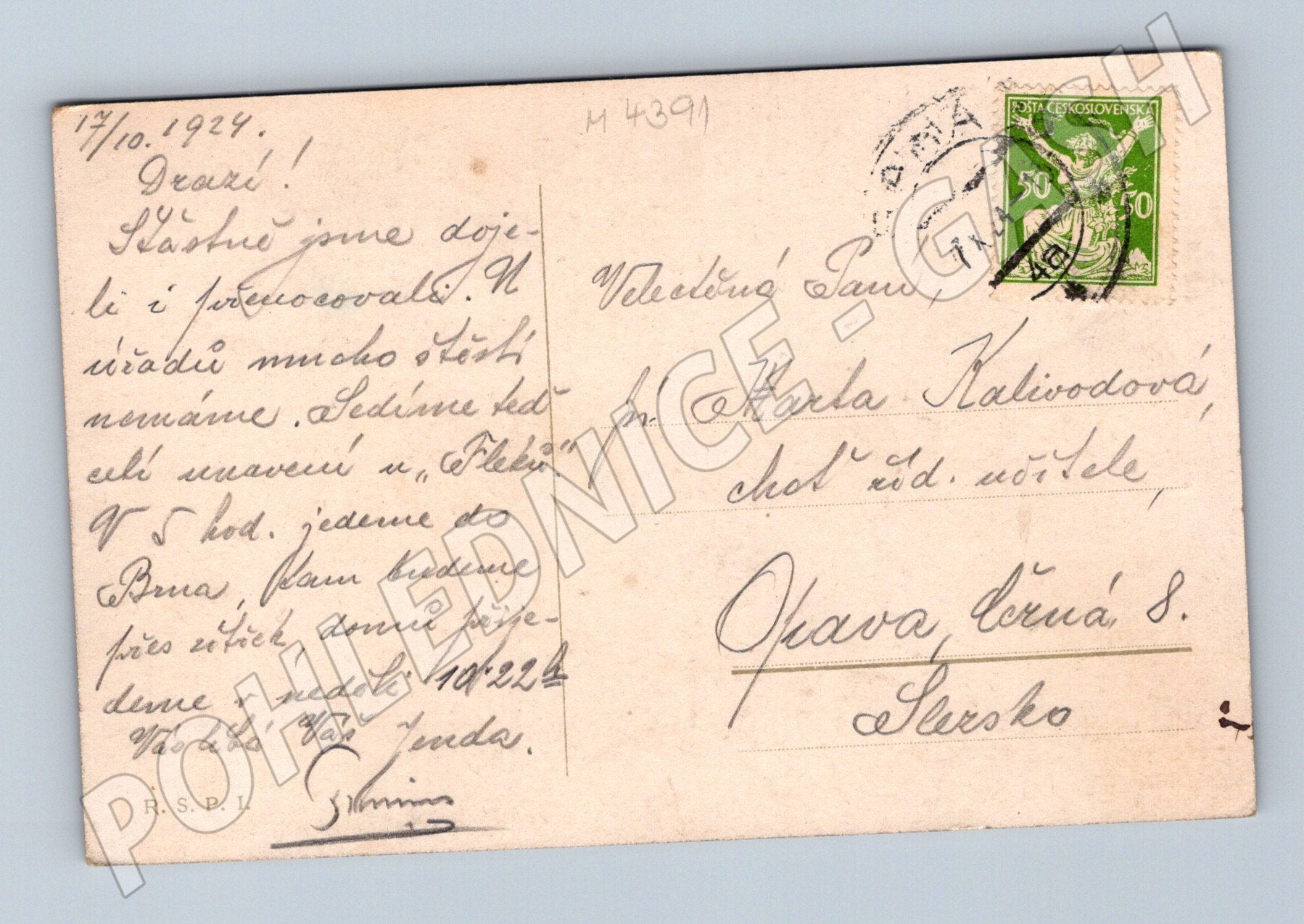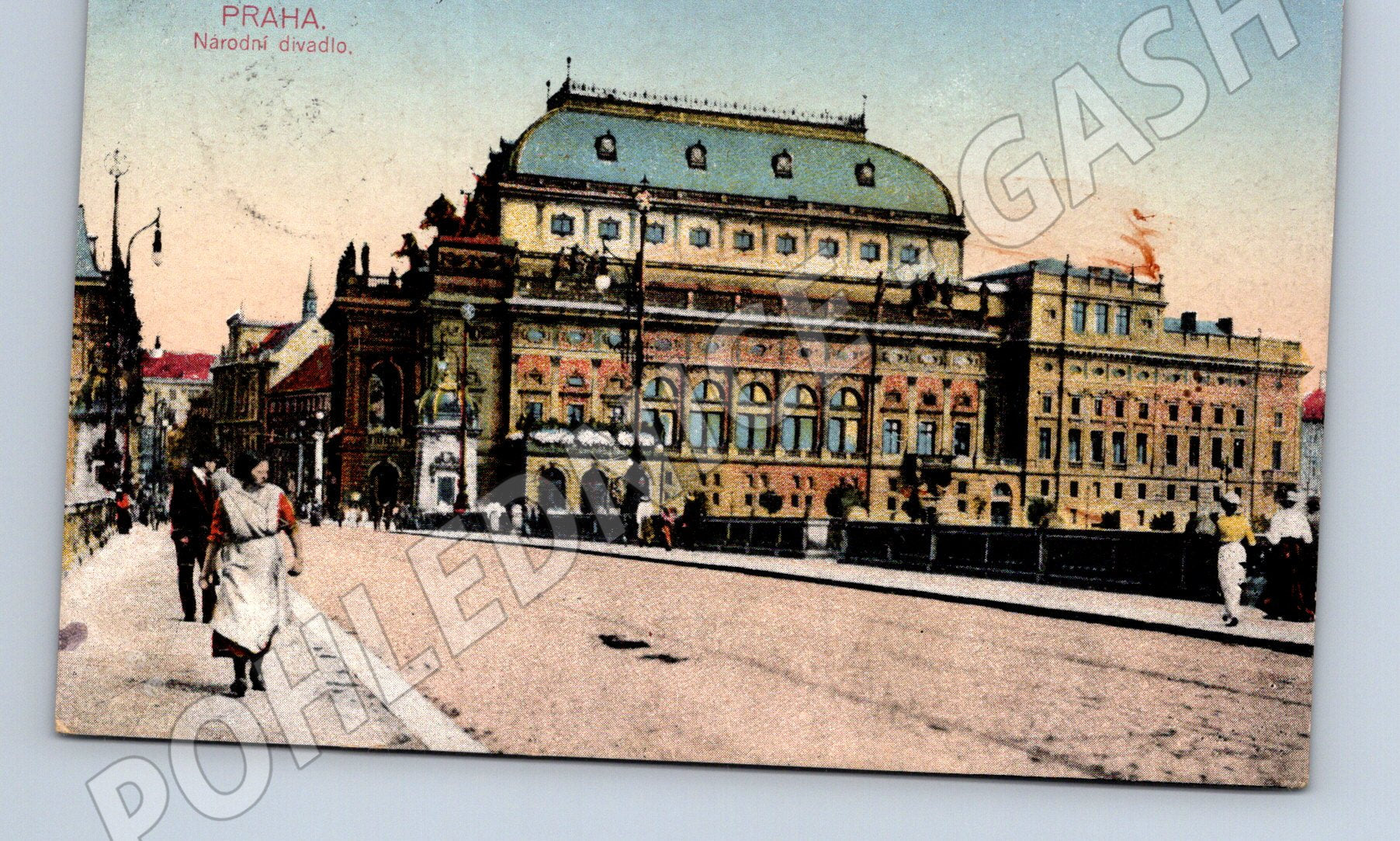 Originální historická pohlednice z roku 1929 zachycující pražské Národní divadlo. Pohlednice je kolorovaná, na přední straně je patrný živý ruch tehdejší Prahy a majestátní budova Národního divadla, jednoho z nejvýznamnějších symbolů české kultury. Na zadní straně je dobová poštovní známka a čitelný rukopis s datací 17.10.1929, adresovaná do Opavy. Skvělý sběratelský kousek pro milovníky dějin, architektury a starých pohlednic. Pohlednice je ve velmi dobrém původním stavu, drobné známky stáří odpovídají jejímu věku.