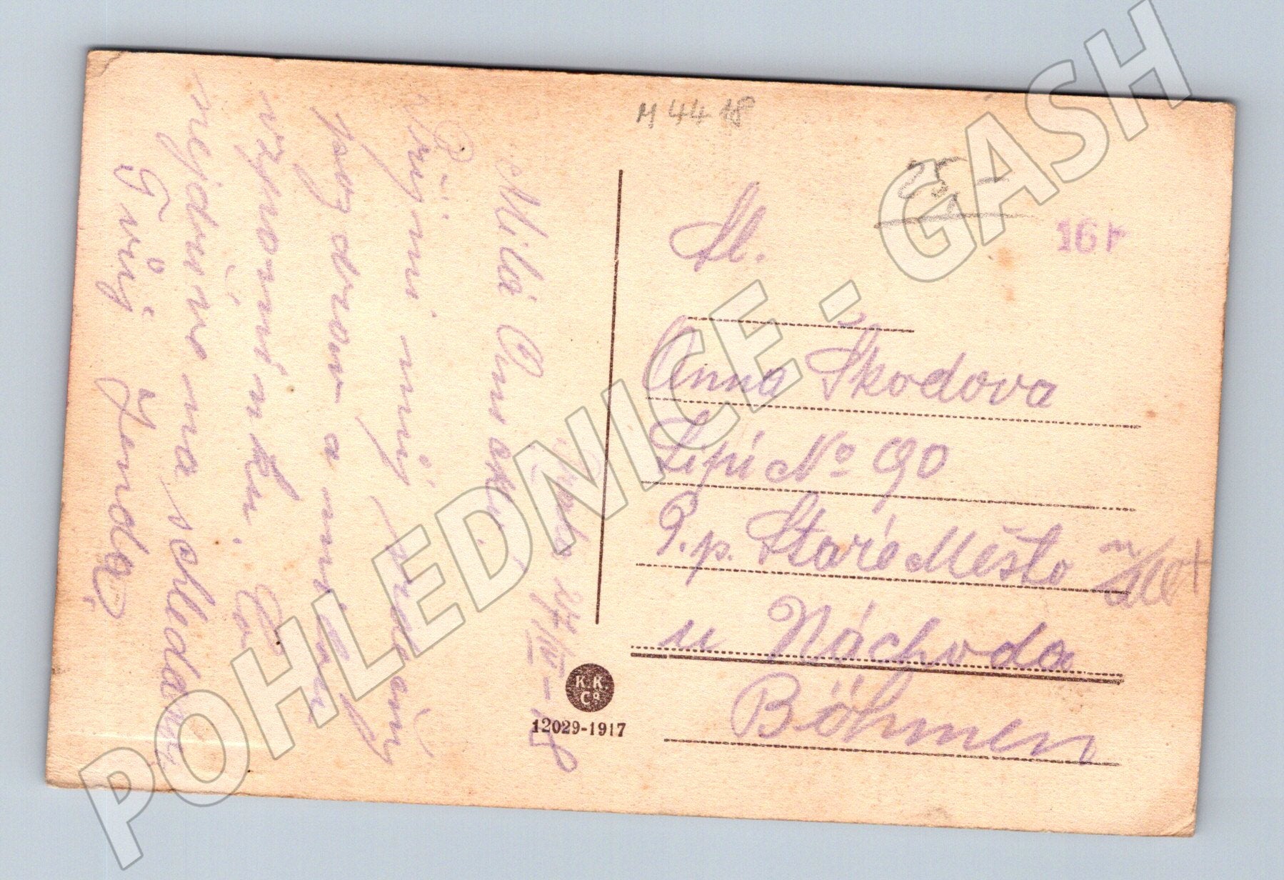Historická pohlednice s motivem Hradčan a Karlova mostu v Praze. Jedná se o kolorovanou pohlednici s výrazným pohledem na Pražský hrad a sochu na Karlově mostě. Na přední straně je popis Praha. Hradčany s Karlova mostu. Pohlednice je prošlá poštou, na zadní straně je ručně psaný text, adresa a známka s razítkem. Rok odeslání je 1917, pohlednice tedy pochází z období Rakouska-Uherska. Formát pohlednice odpovídá malému formátu běžnému do roku 1950. Jedná se o sběratelsky zajímavý kus pro milovníky staré Prahy.