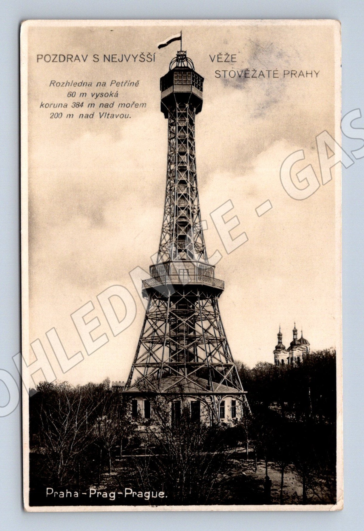Starý pohled - Praha, rozhledna na Petříně, malý formát, prošlé poštou