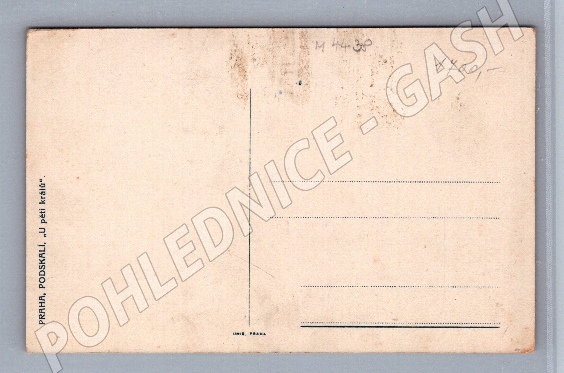 Originální stará pohlednice s motivem historického hostince U pěti králů v pražském Podskalí. Na pohlednici je vidět detailní pohled na fasádu budovy, včetně nápisů a krásných architektonických prvků. Tisk UNIE, Praha, na zadní straně je volné místo pro adresu a zprávu. Pohlednice je ve velmi dobrém sběratelském stavu, bez psaní. Skvělý doplněk do sbírky starých pohlednic z Prahy a českých historických staveb. Rozměr klasického malého formátu, datace do první poloviny 20. století.