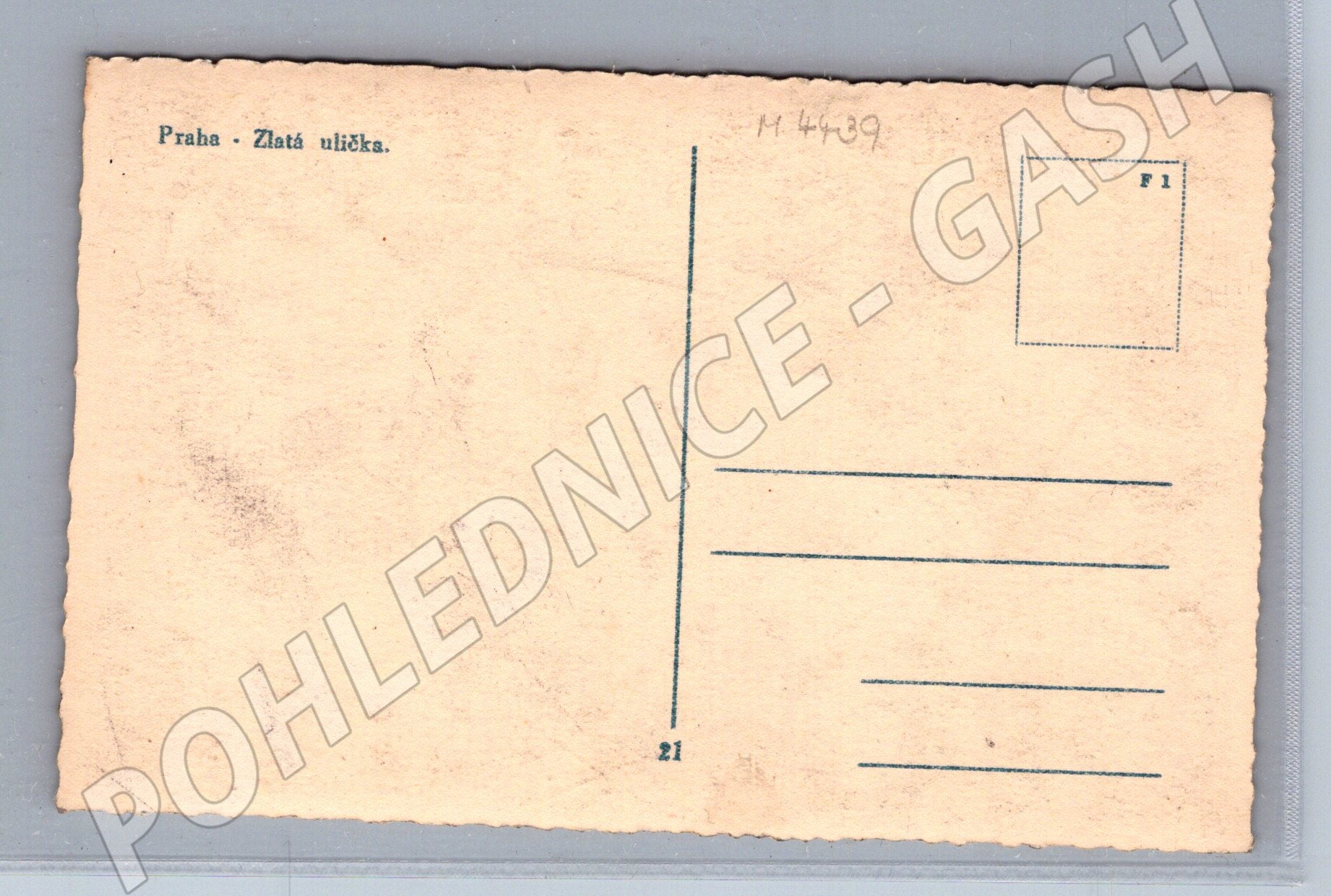 Originální stará pohlednice zachycující slavnou Zlatou uličku na Pražském hradě v Praze. Pohlednice je v klasickém malém formátu a byla vydána přibližně do roku 1950. Na přední straně je černobílá fotografie romantické uličky s typickými historickými domky, která patří mezi nejnavštěvovanější památky Prahy. Zadní strana je nepopsaná, s jasně patrným označením Praha - Zlatá ulička . Okraje mají typické stáří a patinu, ale pohlednice je ve slušném stavu - viz sken. Skvělý sběratelský kus pro milovníky historické Prahy a pohlednic.